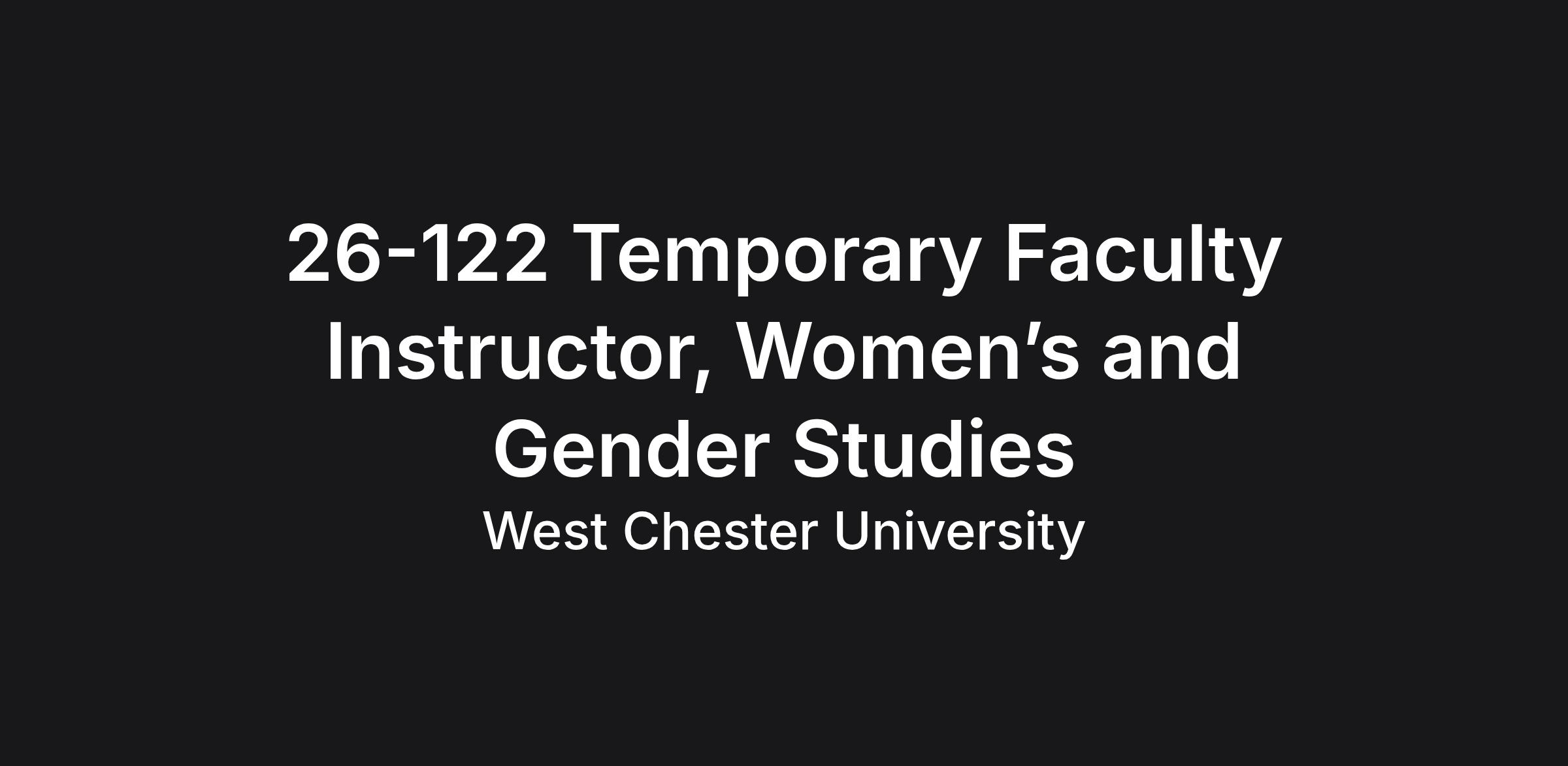Join a vibrant equity-minded campus community of educators whose excellence is reflected in its diversity and student success. The Department of Women's and Gender Studies invites applications for Temporary Faculty Instructor to begin in August 2026.