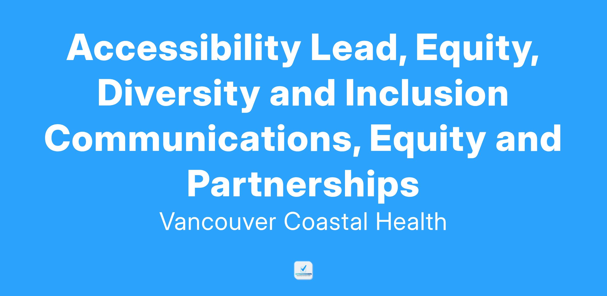 Come work as an Accessibility Lead, Equity, Diversity and Inclusion Communications, Equity and Partnerships with Vancouver Coastal Health (VCH)!