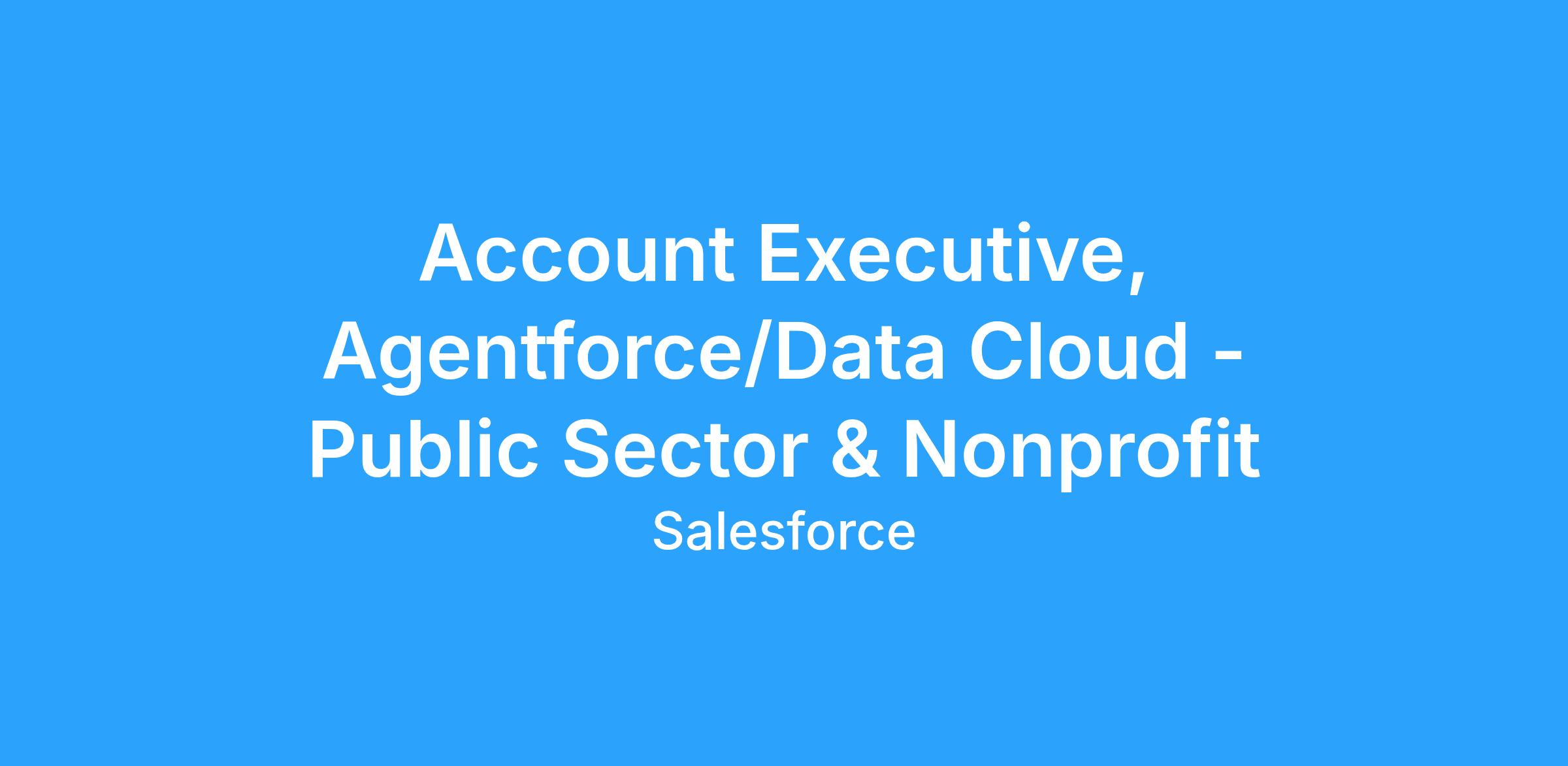 At Salesforce, we're seeking outstanding individuals to join our team as Account Executives with a strong technical background and expertise in AI-driven solutions. In this role, you will be pivotal in driving revenue growth and encouraging enduring client relationships and applying innovative technology redefines customer engagement specifically for our Public Sector and/or Nonprofit clients.