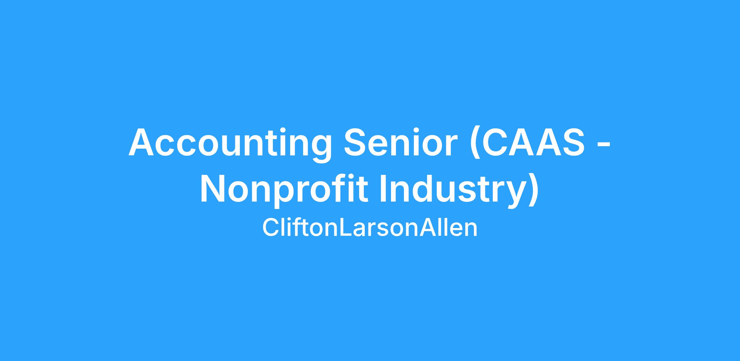 CLA is currently seeking a Senior to join our CAAS (Nonprofit Industry) group in our Arlington (DC), VA office.