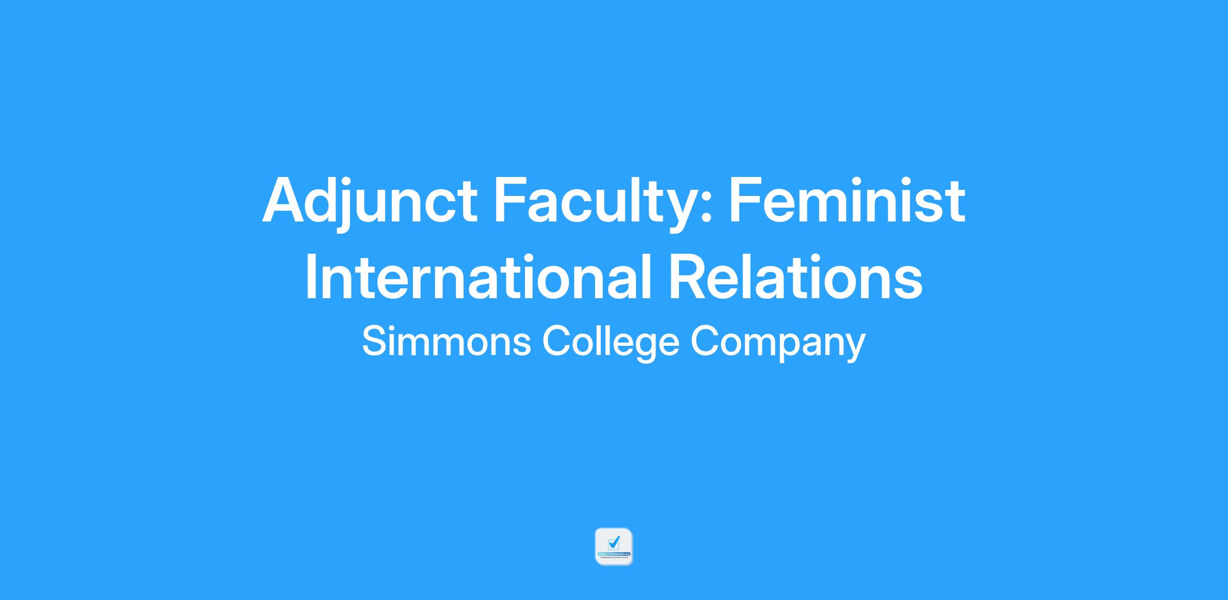 The Department of Politics and Policy in the Gwen Ifill School of Media, Humanities, and Social Sciences at Simmons University seeks a qualified individual to teach the course Feminist International Relations, POLS 356, in the spring of 2026. The course description is as follows: This course analyzes global politics from a feminist and gendered perspective on foreign policies, conduct of war, military, and prospects for development. Explores gender and sexuality in the construction of nationalism and identity, justice for war crimes and human rights abuses, trafficking in persons, resolution of conflict, and terrorism.