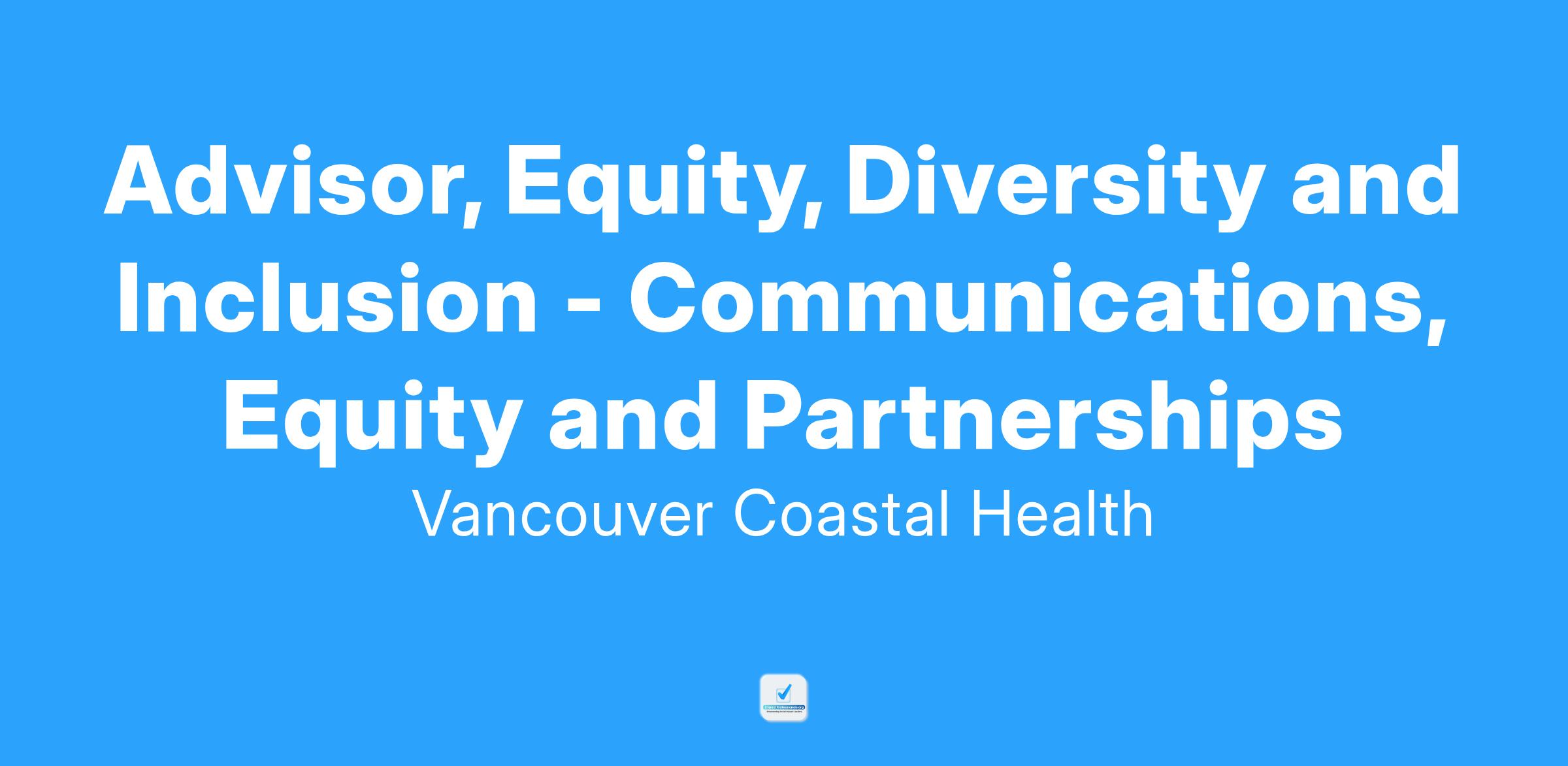 Come work as an Advisor, Equity, Diversity and Inclusion - Communications, Equity and Partnerships with Vancouver Coastal Health (VCH)!