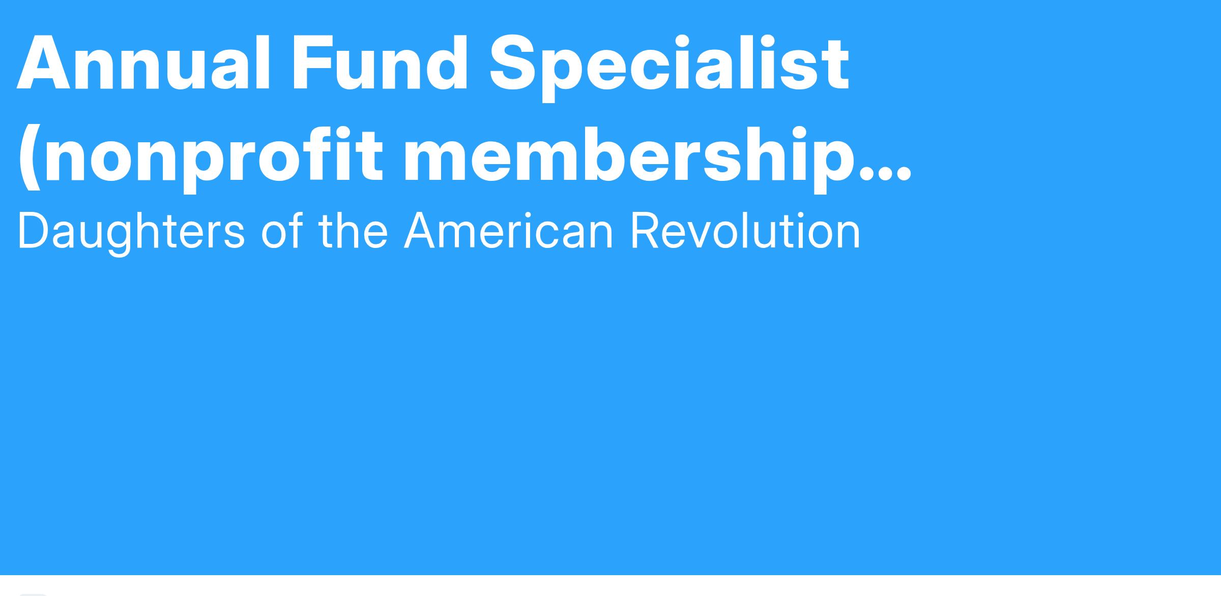 The Daughters of the American Revolution, a non-profit membership organization, has a full-time opportunity in our Development Office for an Annual Fund Specialist. The individual in this role will develop strategic, creative, and collaborative multichannel fundraising campaigns.
