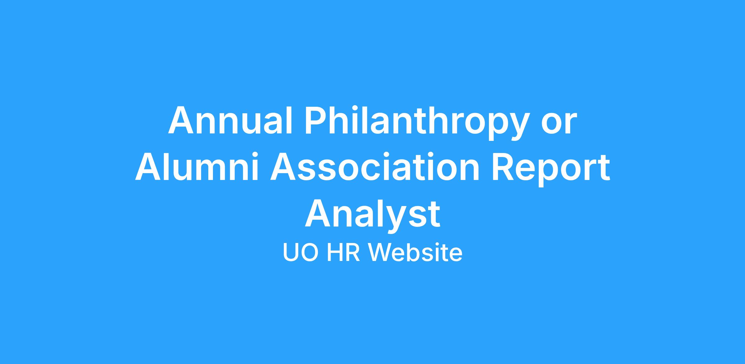 We are seeking to fill two Report Analyst positions, focusing on Annual Philanthropy or the Alumni Association.