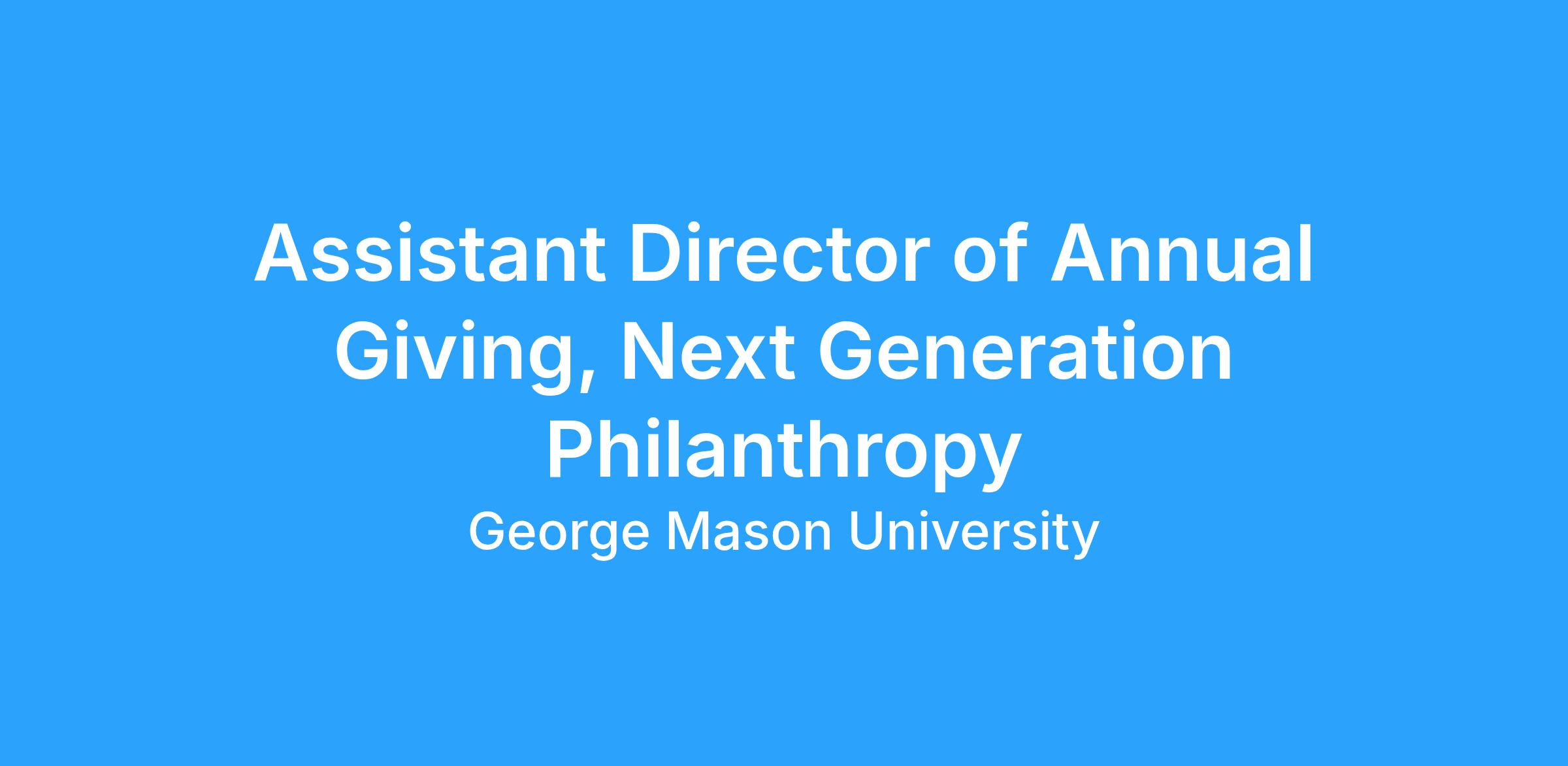 For full consideration, applicants must apply for theΒ Assistant Director of Annual Giving, Next Generation Philanthropy at https://jobs.gmu.edu/.Β Complete and submit the online application to include three professional references with contact information, and provide a cover letter and resume for review.