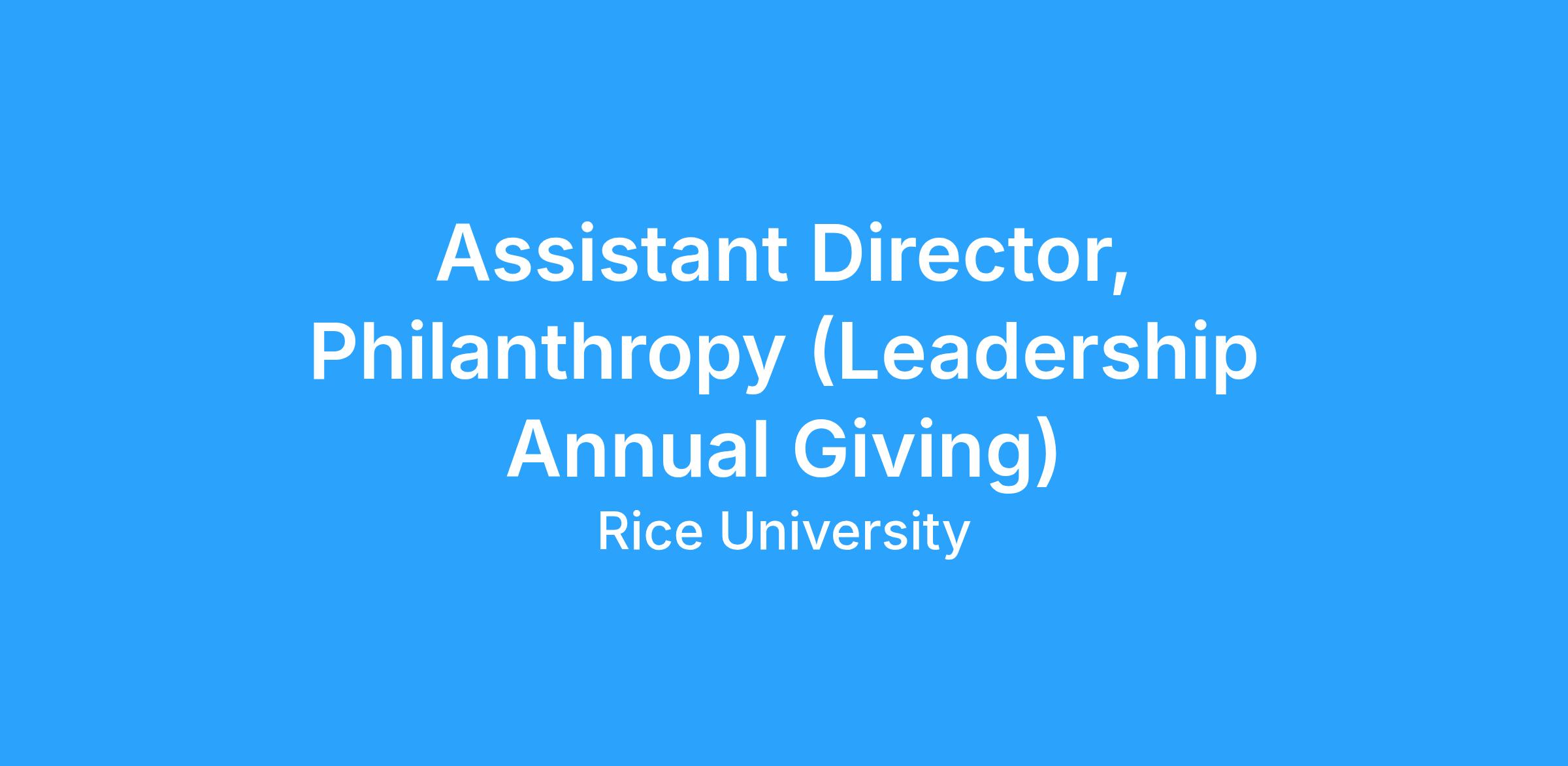 The Assistant Director, Philanthropy (Leadership Annual Giving) is an ambitious, collaborative, and aspirational fundraiser who is eager to grow in the field of higher education fundraising. This role supports building an inclusive leadership giving and pipeline program to identify, engage, qualify, solicit, and steward the next generation of donors for Rice University.