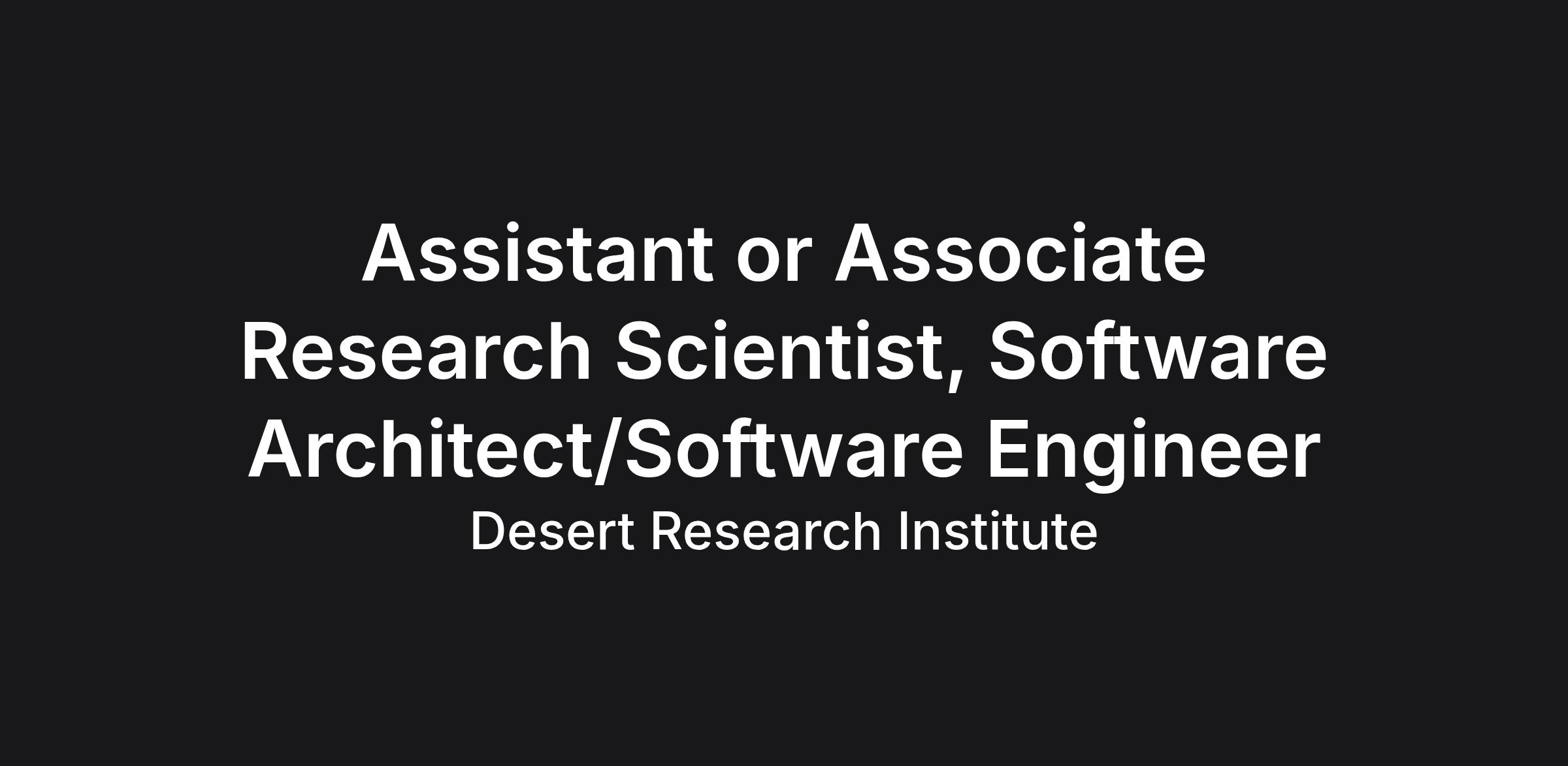 DRIβs Division of Hydrologic Sciences (DHS) seeks a Software Architect/Software Engineer at the Assistant (Rank II) or Associate (Rank III) Research Scientist or Engineer level to join an interdisciplinary team that maintains a mature end-to-end environmental data monitoring platform. This platform encompasses sensor deployment, telemetry, data streaming and storage, and delivering intuitive web-based visualizations of modeled, real-time and historical data tailored to meet client needs. This position is responsible for maintaing the long-term software technical vision for the platform, ensuring that it remains stable, secure, and aligned with client operational and contractual requirements. Additionally, this position will be expected to contribute to ongoing code maintenance and feature development activities. Secondary responsibilities will include working with the Systems Manager in maintenance of the platformβs technical vision, and coordinating the teamβs NIST 800-171 and CMMC cybersecurity activities. The successful applicant will be encouraged to also assist other DRI Faculty who conduct a broad range of earth science and engineering projects. This position can be located in either in Reno or Las Vegas, NV and a hybrid work schedule may be possible.