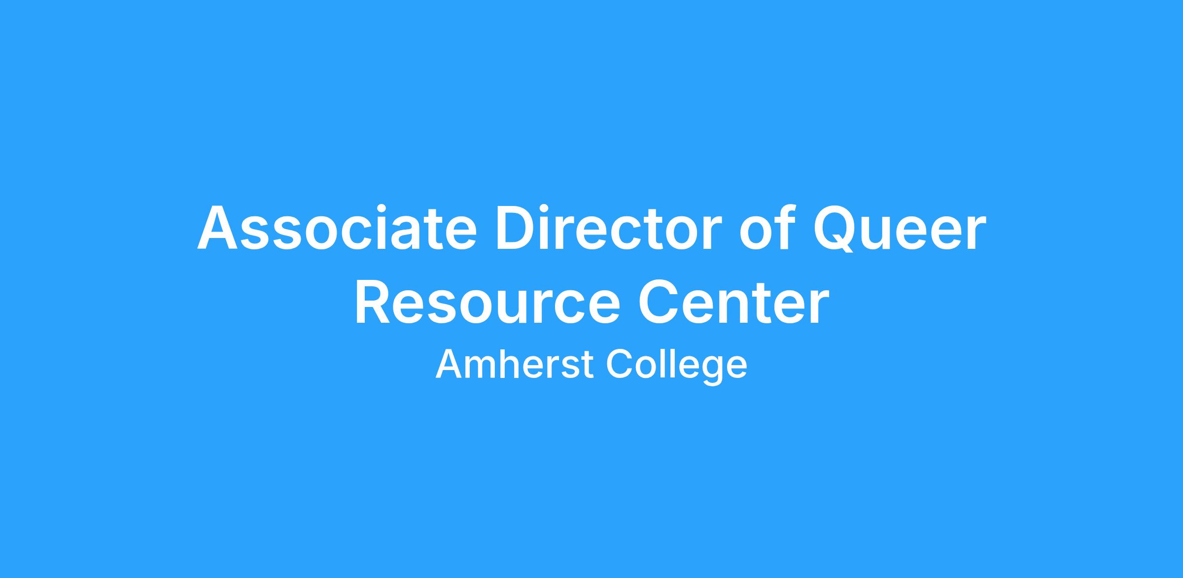 Amherst College invites applications for the Associate Director of Queer Resource Center position. The Associate Director of Queer Resource Center is a full-time, year-round position. The expected range for this position is $72,000-79,000 per year.