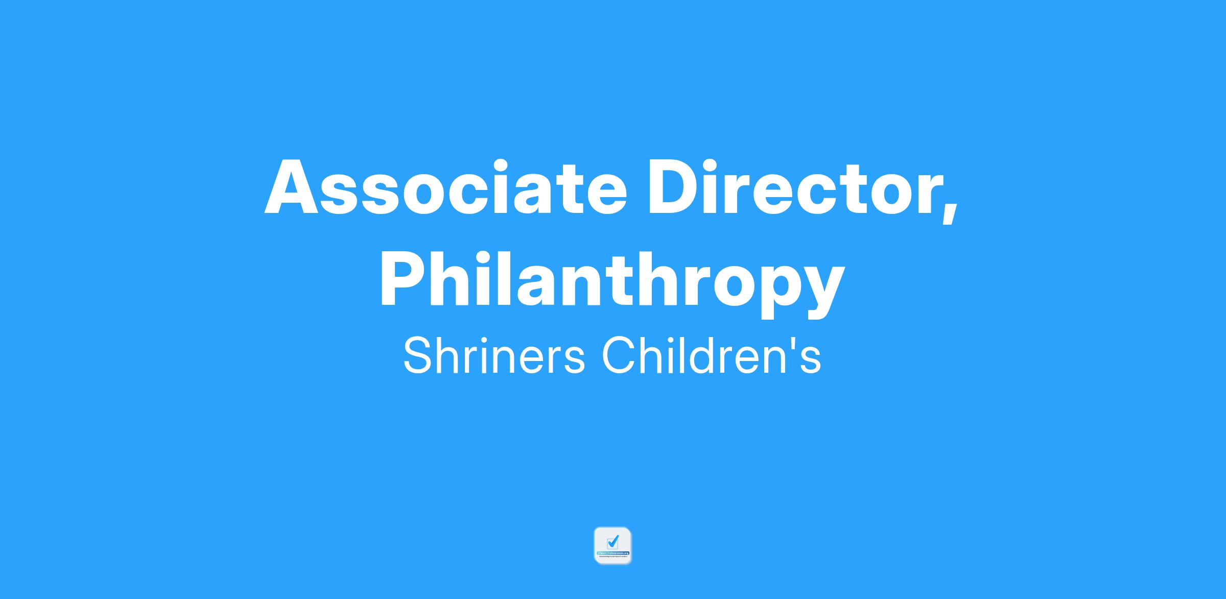 The Associate Director, Philanthropy identifies and cultivates prospective donors from communities within the hospital/clinicβs service territory for the purpose of soliciting major gifts. The Associate Director nurtures donor relationships through regular contact, communication, and recognition, and develops and maintains relationships with hospital-affiliated Shriners Temples and the community for the purpose of fundraising. They are responsible for following and fulfilling the objectives and goals disseminated by Shriners Childrenβs national and local boards, as well as the Executive Director of Location Philanthropy and Chief Philanthropy Officer. The position requires the willingness and ability to travel as needed and occasionally work evenings and weekends when necessary.