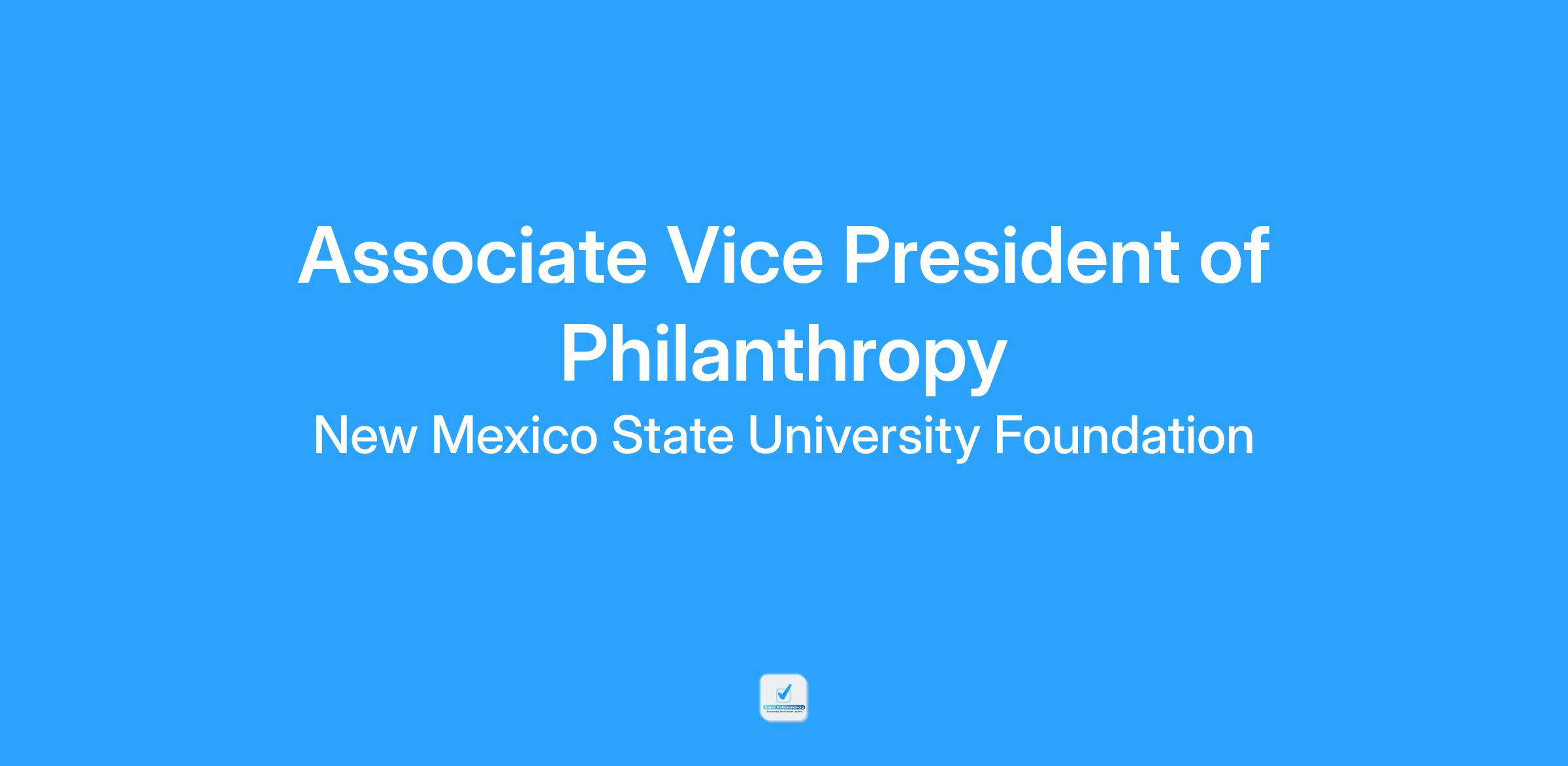 The Associate Vice President (AVP) of Philanthropy provides strategic leadership to grow philanthropic support for the NMSU Foundation. As a member of the Foundation's senior leadership team, the AVP oversees development officer performance, builds donor relationships, and leads training programs to maximize fundraising outcomes. This role manages a team responsible for major and principal gifts, planned giving, Corporate and Foundation Relations, campaign initiatives, and prospect strategy.Β