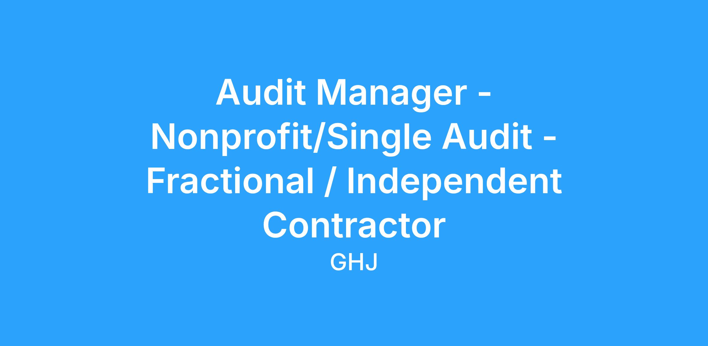 GHJ is looking for a Audit Manager - Nonprofit/Single Audit (Fractional / Independent Contractor)