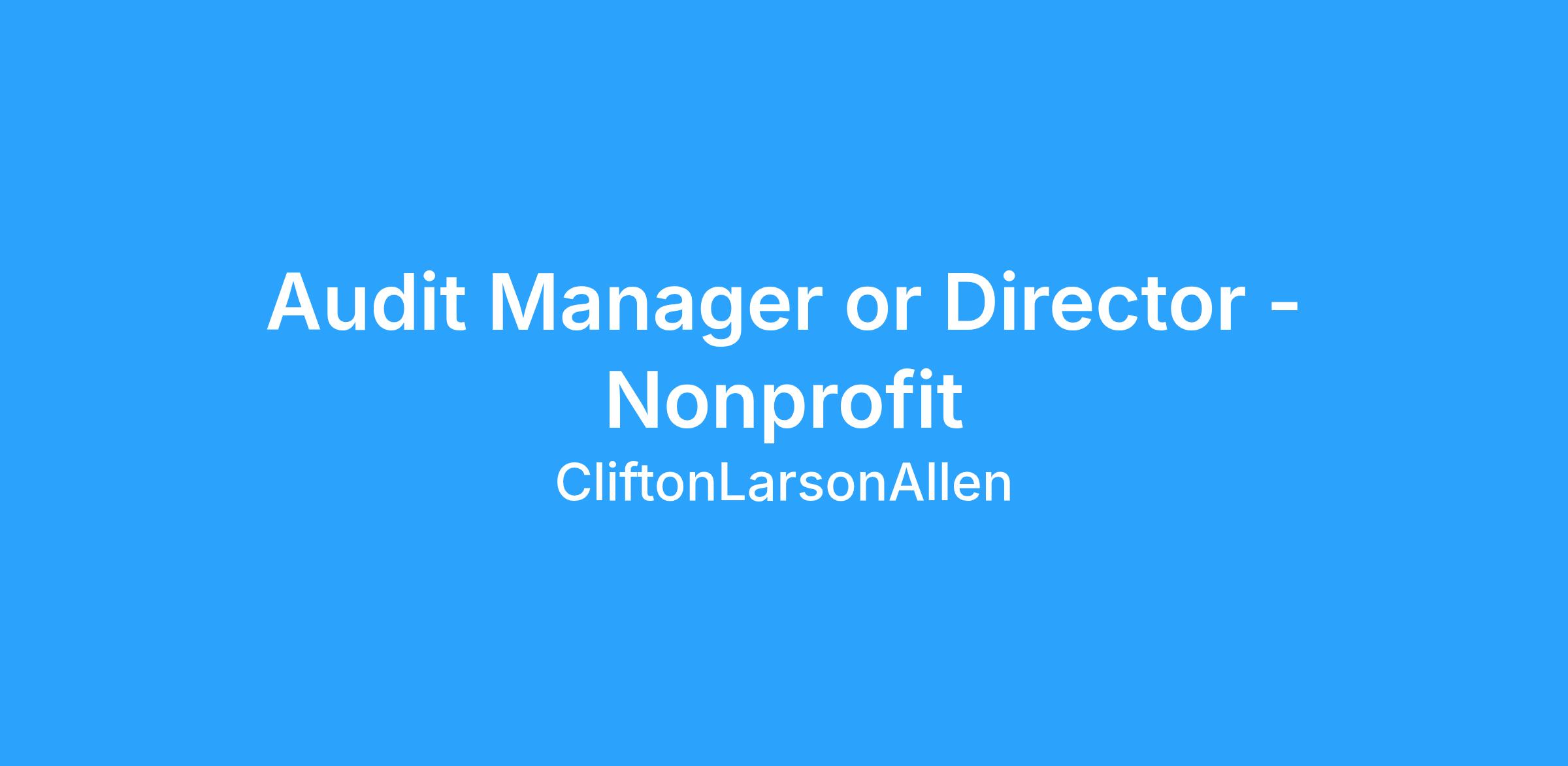 CLA is currently seeking an Audit Manager or Director to join our Nonprofit practice in the Pittsburgh, PA area. Our Nonprofit group is one of the largest industries within CLA consisting of over 850 professionals serving over 12,000 nonprofits. This is an in-office position based out of Pittsburgh office.