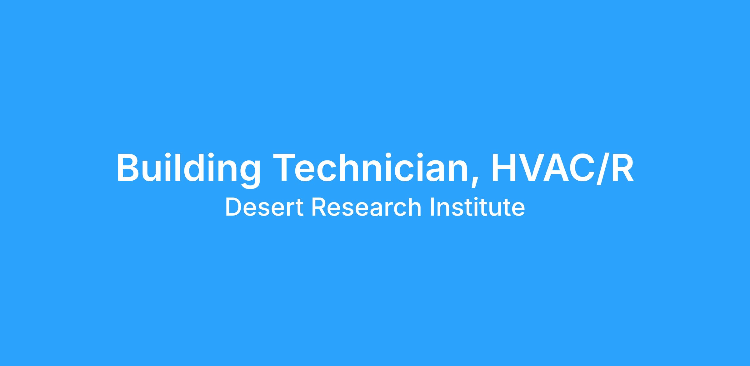 The Desert Research Institute (DRI) is seeking dedicated individual to fill a full-time Building Technician β HVAC/R position for the Reno campus. Entry level applicants who meet the qualifications are encouraged to apply!