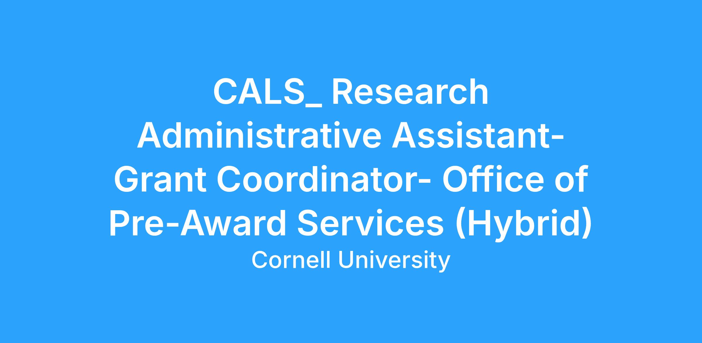 Under the direction of the Assistant Director/Team Lead and Grant and Contract Officers of the CALS Office of Pre-Award Services, in collaboration with eligible Principal Investigators (PIs), the Research Administration Assistant provides support for pre-award sponsored projects and other restricted proposal submissions as required.