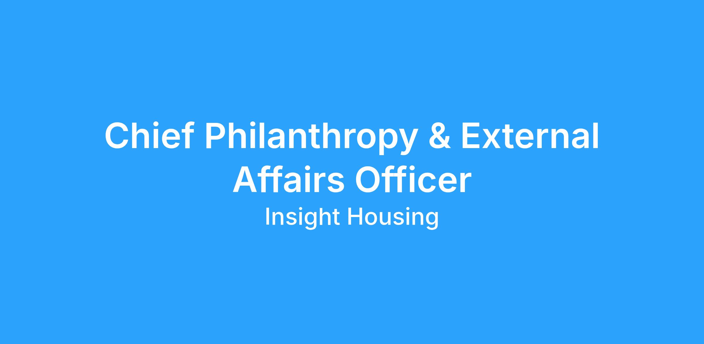 The Chief of Philanthropy & External Affairs Officer (CPEAO) is a dynamic and strategic leader responsible for driving Insight Housing's external engagement, communications, and revenue strategy. Reporting directly to the CEO and serving on the executive team, the CPEAO ensures alignment across fundraising, policy, and communications to advance organizational priorities and impact. With a goal of raising $3 million annually, the CPEAO provides strategic vision and leadership to the philanthropy team while also leading our efforts to shape public policy, build meaningful partnerships, and amplify the organization's voice. This role directly supervises the Philanthropy Manager and the Policy and Communications Manager.
