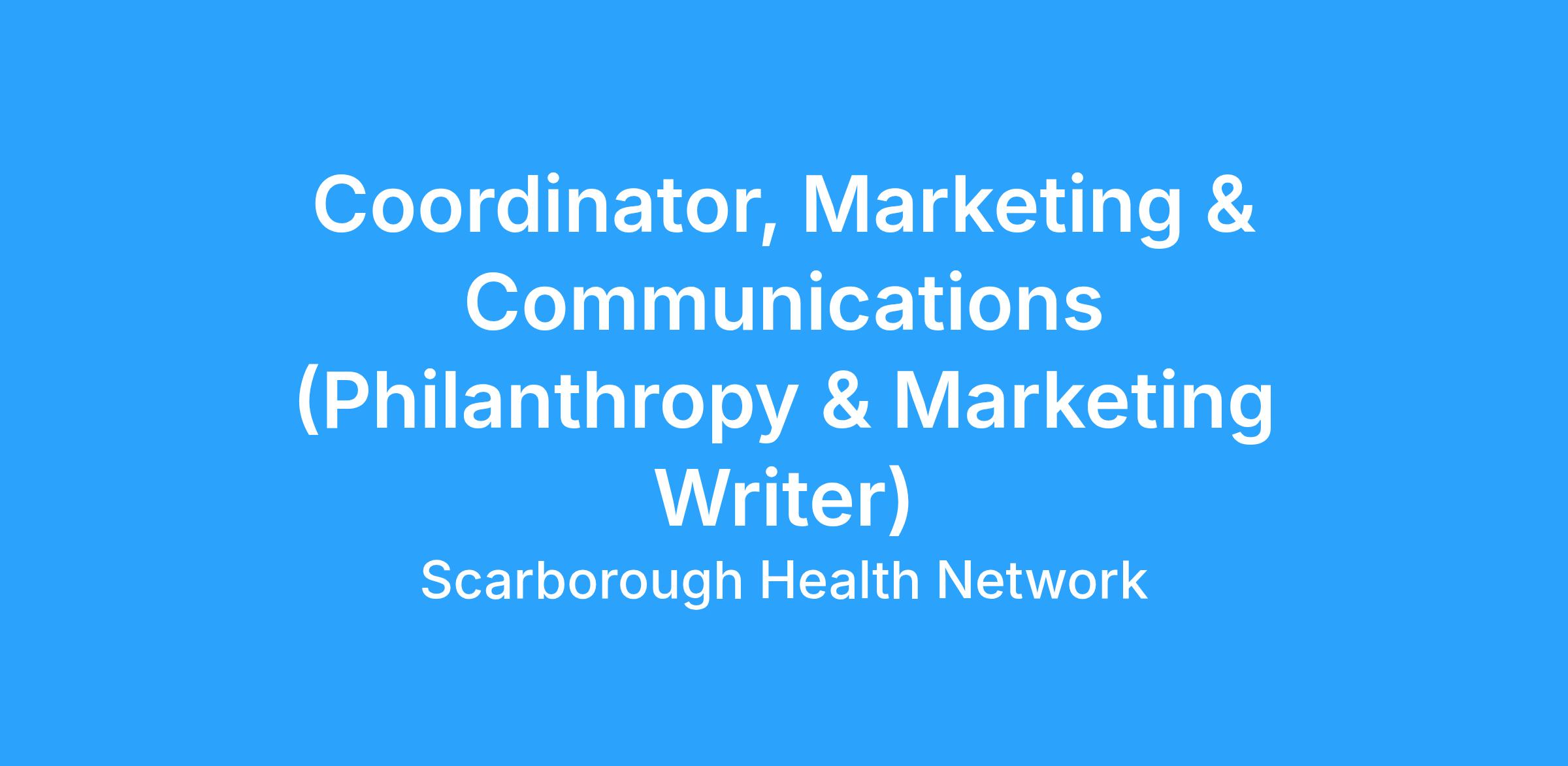 Scarborough Health Network Foundation is seeking a Coordinator, Marketing & Communications (Philanthropy and Marketing Writer) to join our Marketing & Communications (MarCom) team. This is an exciting opportunity for an eager, proactive, and talented writer who is passionate about storytelling and ready to learn. You will work closely with our Senior Philanthropy Writer and the MarCom team to support writing needs across the Foundationβfrom donor proposals and stewardship reports to compelling content for campaigns, digital platforms, and events.