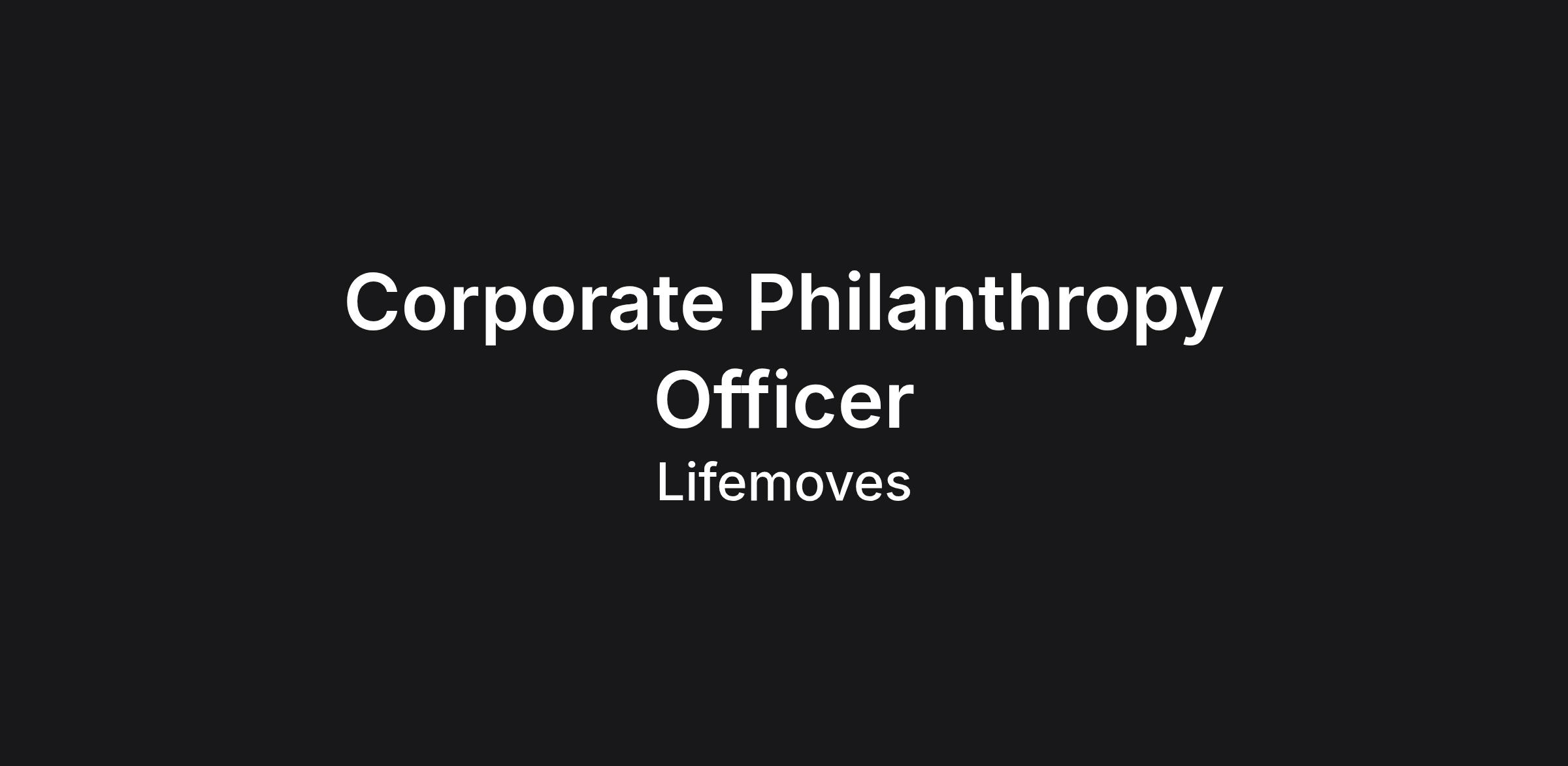 The Corporate Philanthropy Officer will play a key role in executing the LifeMoves Corporate Fundraising Program. As a primary relationship manager on the team, this position is responsible for maintaining financial support and growing engagement with their portfolio of 70 β 100 corporate and community partners.