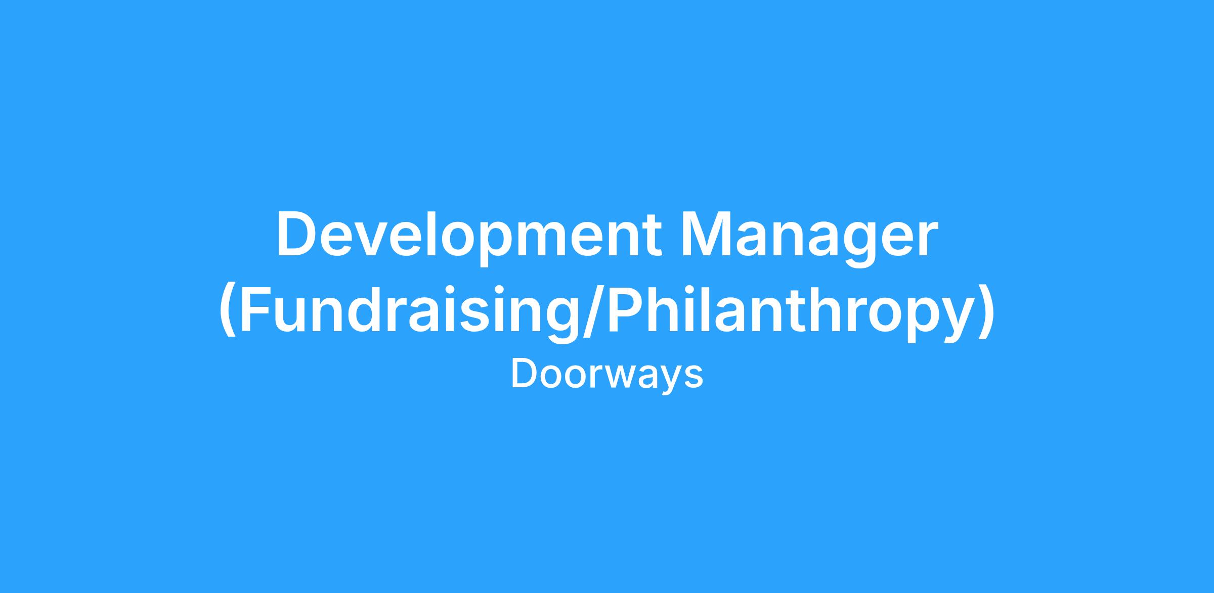 Doorwaysโ Development Manager (Fundraising/Philanthropy) helps to shape every facet of Doorwaysโ fundraising program. Working in collaboration with Doorwaysโ Chief Development and Strategy Officer, the Development Manager plans and delivers on fundraising strategy that will increase private revenue, year-over-year.