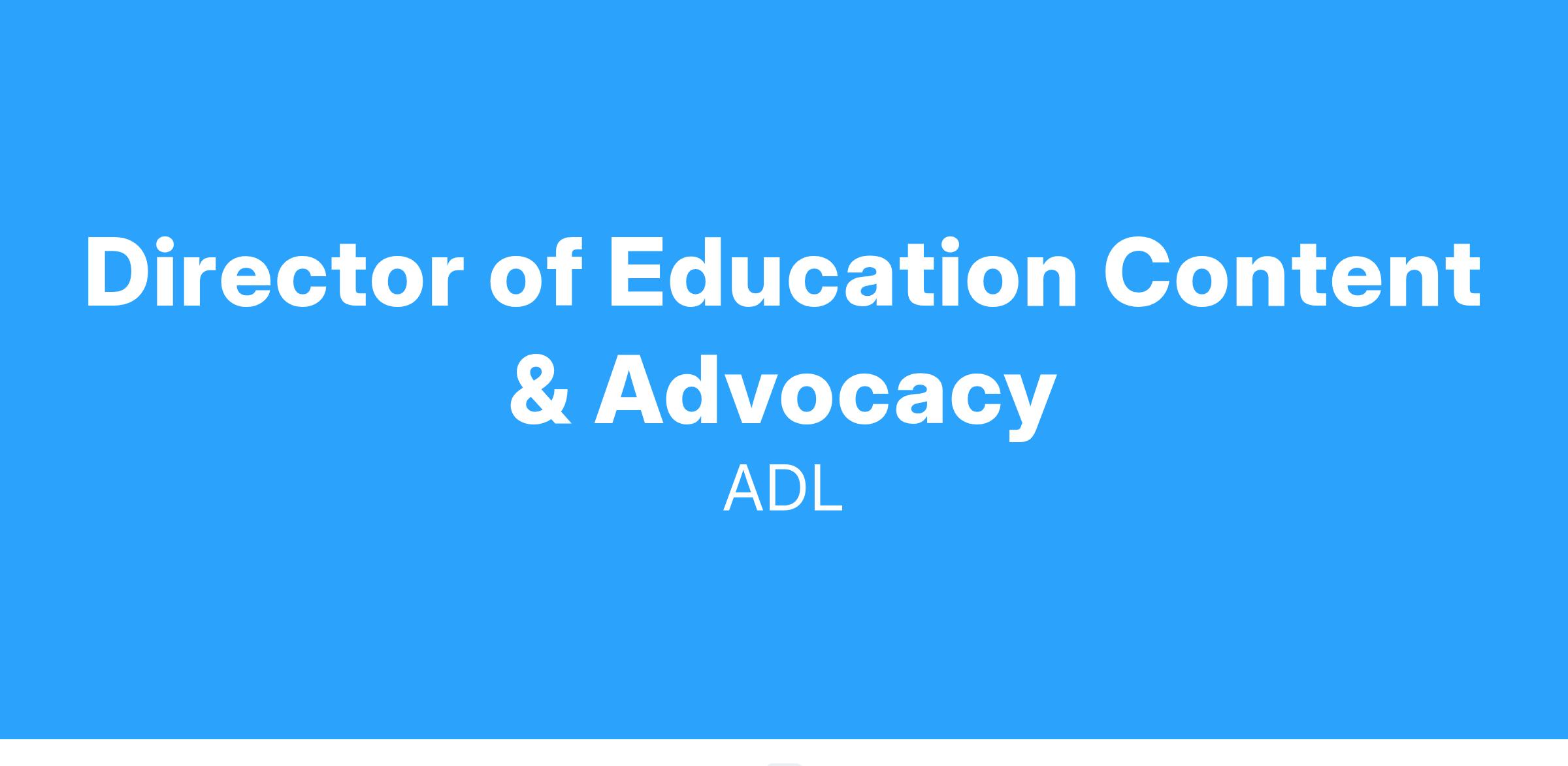 ADL values a diverse workplace and strongly encourages women, people of color, LGBTQ+ individuals, people with disabilities, members of underrepresented ethnic groups, foreign-born residents, and veterans to apply. ADL is an equal opportunity employer. Recruitment, hiring, promotions and other terms, conditions and privileges of employment shall be maintained in a manner which does not discriminate on the basis of age, race, creed, religion, color, national origin, sex, sexual orientation, gender expression, marital status, physical or mental disability, veteran status, or military status, or in violation of any applicable Federal, state or local laws.โฏโฏโฏโฏย