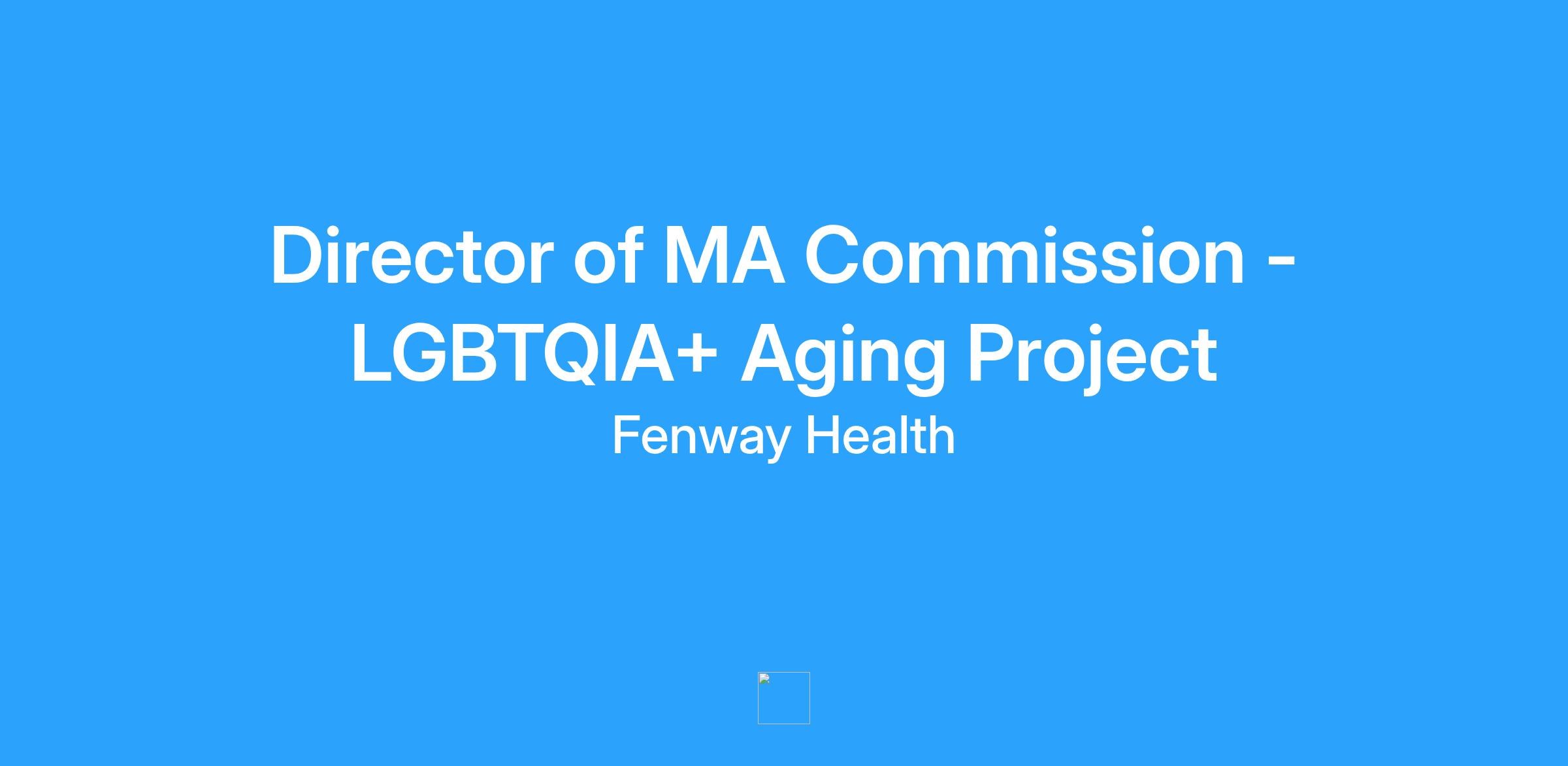 Reporting to the Director of the LGBTQIA+ Aging Project, the Director of the Massachusetts Commission on Aging is an administrative, professional and management position responsible for planning, developing, implementing, directing and advocating for the Commission.