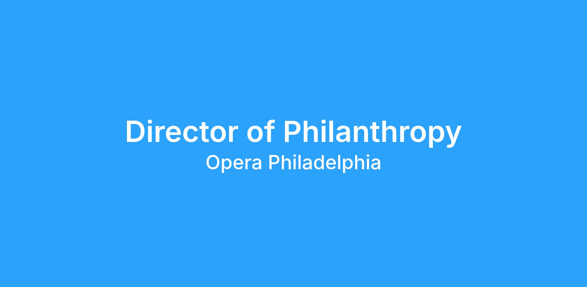 The Director of Philanthropy is a key member of the leadership team of Opera Philadelphiaβs (OP) Philanthropy Department responsible for a comprehensive program focusing on maximizing contributed support from Individualsβboth existing and new.