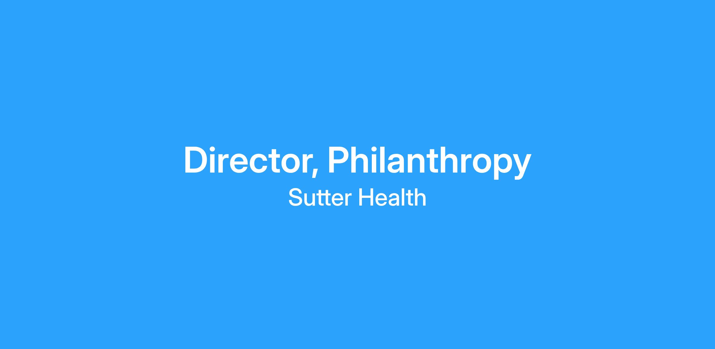 Is responsible for directing fundraising programs focused on the Sacramento and Central Valley regions, with special emphasis on individual donor cultivation. Focus on raising principal major gifts, planned gifts, and annual gifts. Provides leadership and is responsible for planning, implementing, and evaluating programs and initiatives, and for the fiscal and administrative structures in this capacity, the Director leads, directs, coordinates, and executes the planning for Philanthropy strategies in a manner aligned with the goals Sutter Health. Accordingly, also serves as administrative liaison to Senior Management and Medical Staff, as well as to Sutter Health leadership, in order to ensure the smooth and integrated operation of the organizations, and the appropriate alignment of operational strategies with the overall mission and available resources.Job Description: