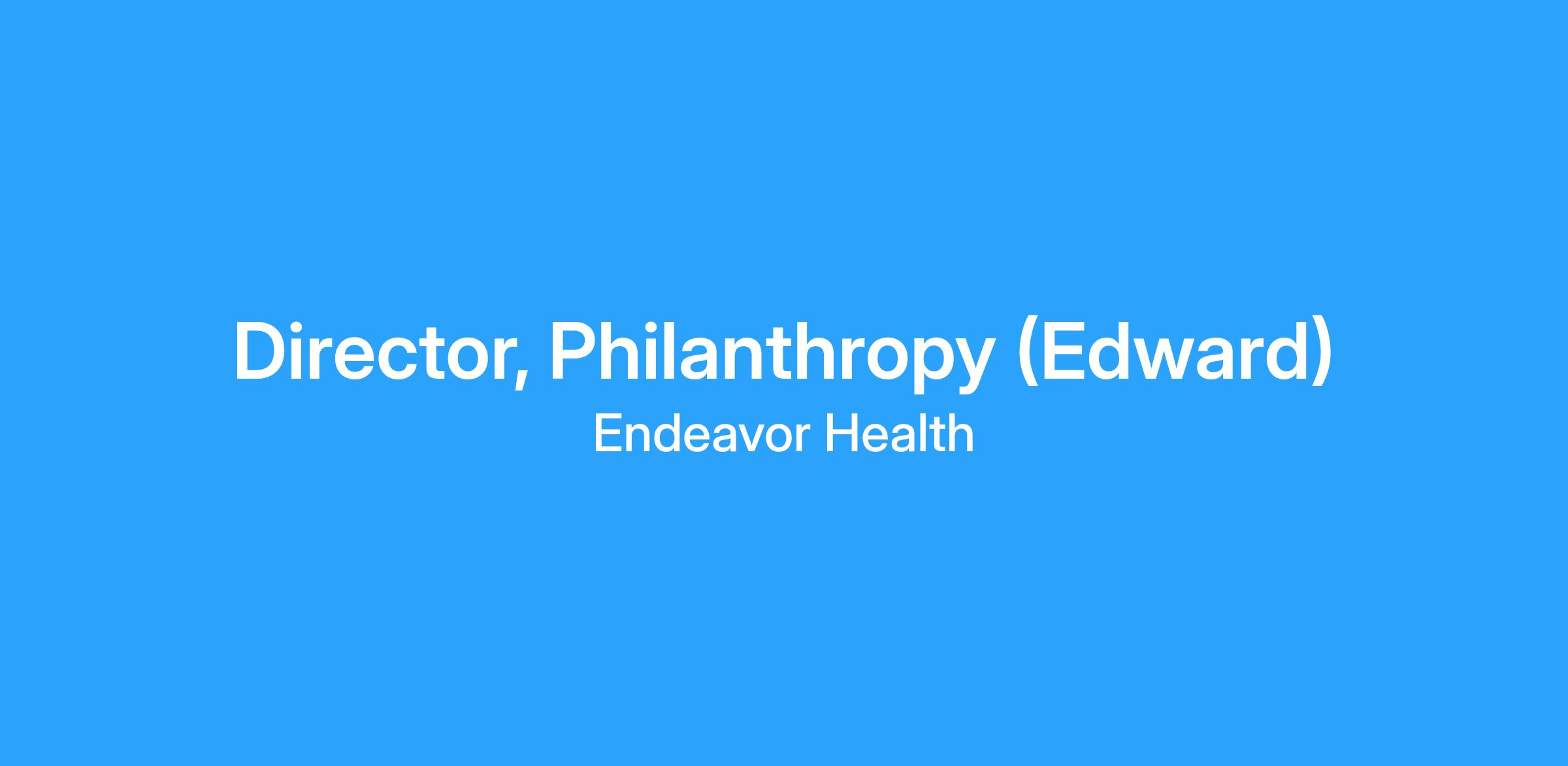 Reporting to the Executive Director, Foundation (Edward), the Director, Philanthropy is responsible for raising major gifts (five- to seven-figures) from individuals, grateful patients, and family foundations for the Foundation. The candidate will be responsible for prospect identification and qualification in partnership with Prospect Development team members and physician partners and the cultivation, solicitation, and stewardship of donors and prospects in support of Endeavor Healthβs clinical and patient care mission. This role is crucial to Endeavor Healthβs philanthropic growth strategy as we set our sights to deliver the highest quality primary and subspecialty care, advance innovative research, and invest in our people, all the while sustaining our deep commitment to our local communities. We are seeking an experienced, relationship-focused, results-driven, data smart major gifts fundraiser with a track record of success in growing portfolios and giving while being a thoughtful and kind colleague
