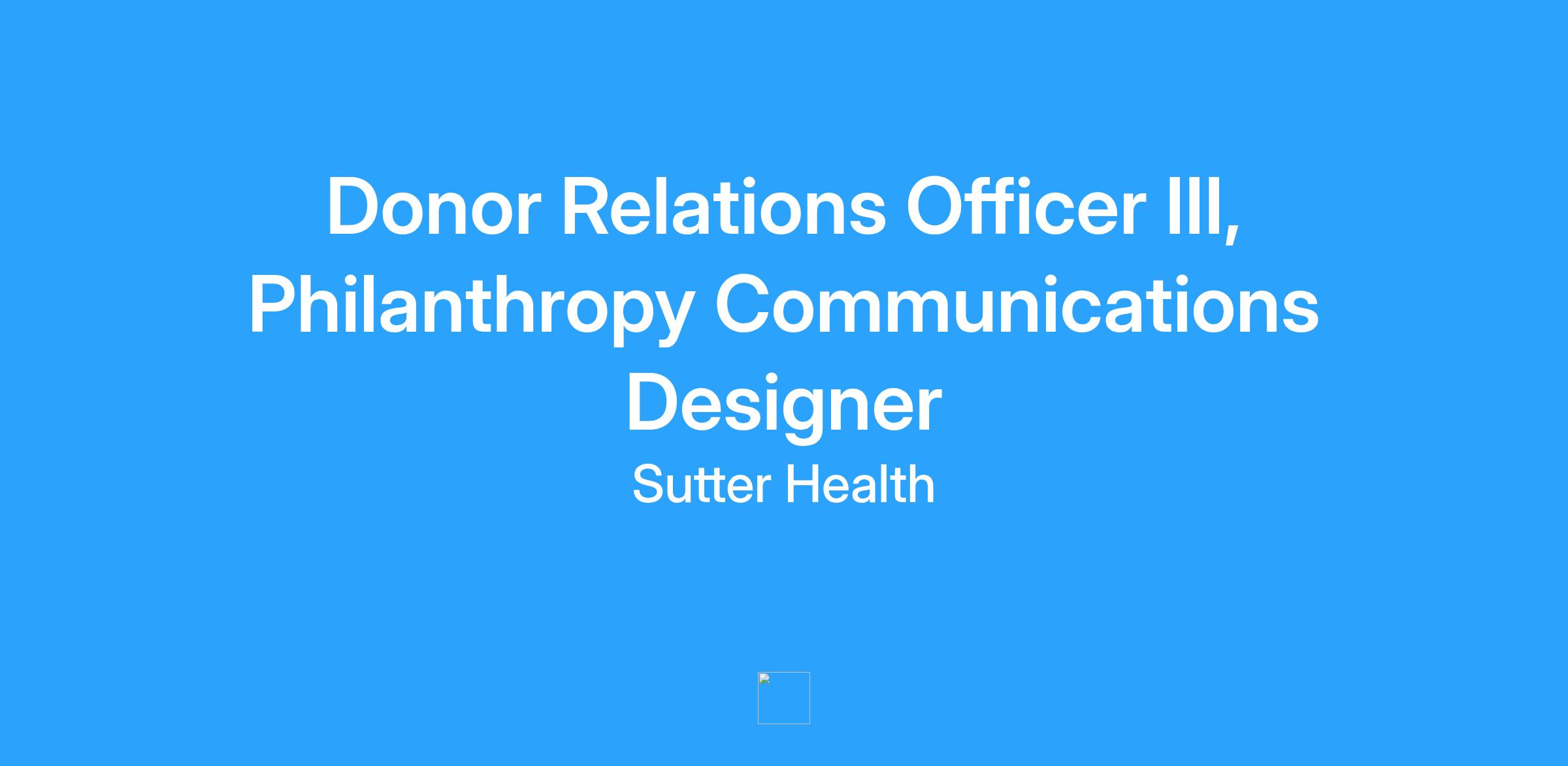 The Donor Relations Officer, Communications Designer, plays a vital role in advancing Sutter Healthβs philanthropic mission by producing visually compelling materials that support donor engagement and strategic fundraising efforts. This role requires fluency in both print and digital design, with a strong understanding of how visual storytelling enhances communications objectives. The Communications Designer collaborates closely with philanthropy communications colleagues and internal stakeholders across the organization to develop high-quality creative assets that reflect the Sutter Health brand and campaign priorities. Deliverables may include proposals, presentations, impact reports, event collateral, signage, social media graphics, email campaign assets, infographics, and web page designs.Job Description: