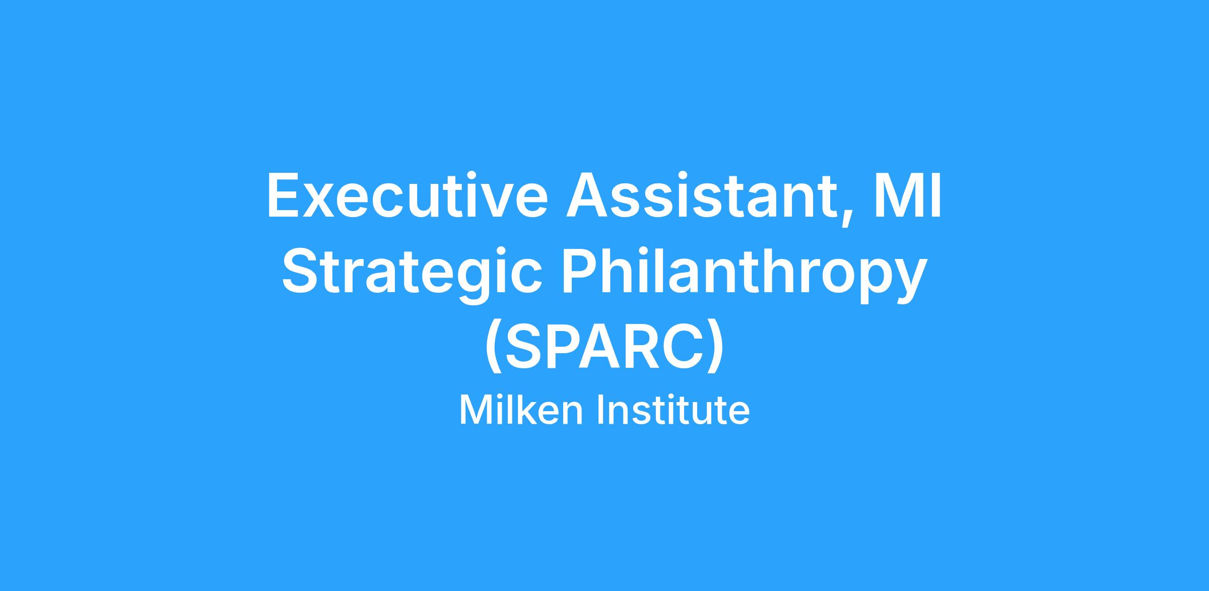 Milken Institute Strategic Philanthropy SPARC (Science Philanthropy Accelerator for Research and Collaboration) is looking for a proactive and adaptable executive assistant to support portfolio leadership. The role involves managing complex scheduling, handling travel logistics and expenses, helping with prep for meetings and organizing task management. This role requires independence and task-level ownership, as well as flexibility and the ability to work collaboratively. The ideal candidate can handle structured tasks with minimal oversight, while actively learning and applying best practices to support evolving business needs.