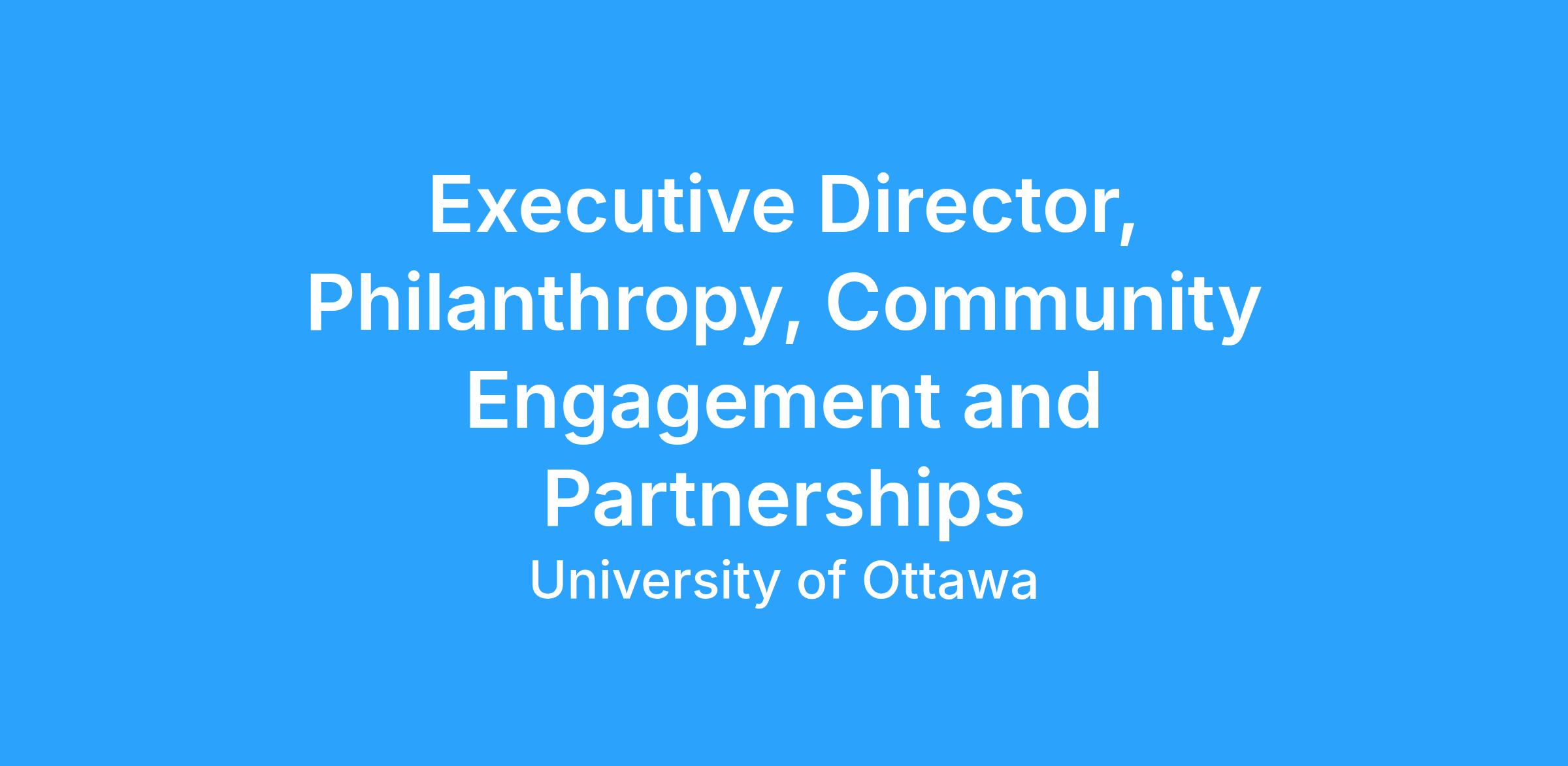 The Executive Director, Philanthropy, Community Engagement and Partnerships leads and manages the advancement function of the Telfer School of Management. The primary purpose of this position and team are 1) to create stronger engagement linkages between the School and the community (donors, alumni, corporate partners and other individuals, organizations and employers of our students), which will lead to higher levels of affinity with the School; 2) through this engagement strategy, generate external funding and other resources to support the Schoolβs core education and research mission and strategic initiatives; and 3) ensures the proper management of stewardship prospects and donors in adherence to University guidelines.