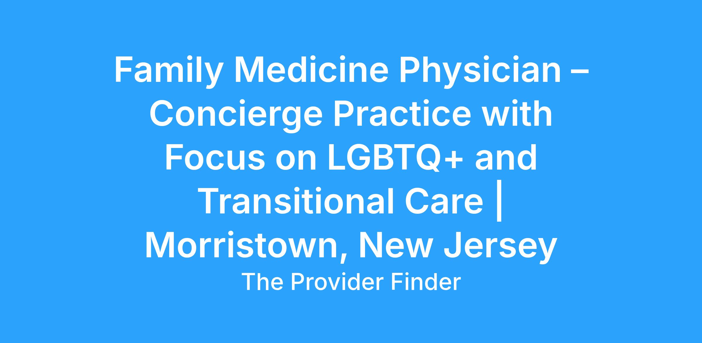 Family Medicine Physician β Concierge Practice with Focus on LGBTQ+ and Transitional Care