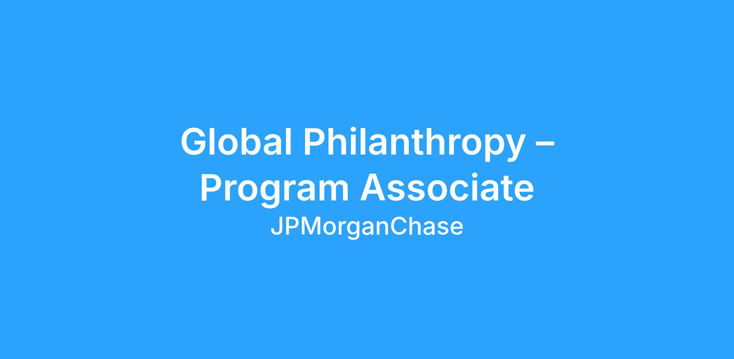 DescriptionBecome an integral part of the Corporate Responsibility (CR) team where you will have an opportunity to work alongside a team of dedicated professionals focused on generating authentic and durable social impact. At JPMorgan Chase, our global presence and scale provide us with unique insight into some of the most urgent challenges facing communities and the ability to approach them comprehensively, removing barriers to opportunity and opening pathways to economic growth and success. We leverage the resources of our firm to develop a comprehensive approach to addressing major social and economic challenges and use our scale to deliver maximum impact at the local level. The Global Philanthropy team manages investments that include multi-year initiatives aimed at increasing economic opportunity around the world by expanding workforce readiness, growing small businesses, improving consumer financial health and expanding the economic vitality of the worldβs cities.Β