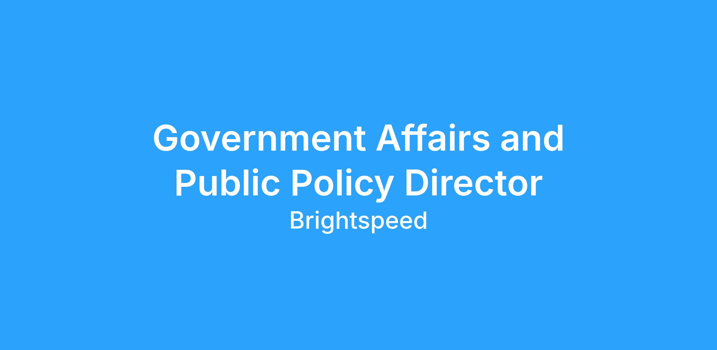 As Government Affairs and Public Policy Director, you will play an important role in advancing the interests of the company, its customers, and its stakeholders before state and local governmental officials. You will also support Brightspeedโs business strategy, goals, and objectives through effective internal and external communications (including social media) that positively impact the companyโs image and reputation. You will also assist with strategic planning and play a key role in developing the strategy, advocacy, and execution of the companyโs broadband grant initiatives, including through county and state advocacy as well as providing strategic review and direction for broadband grant program requirements.