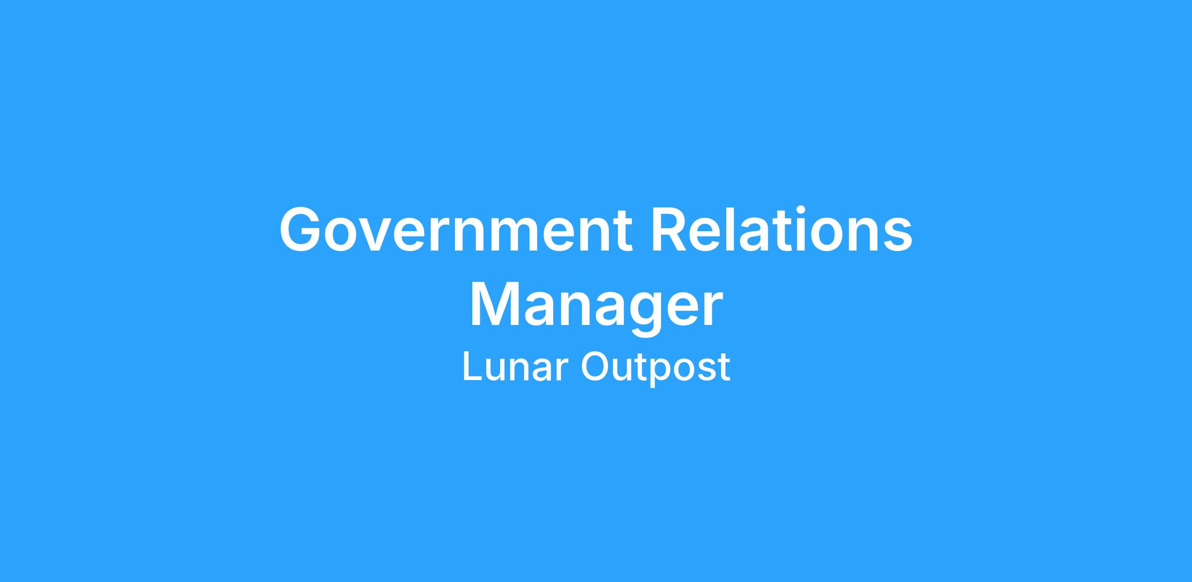 Are you passionate about shaping the future of humanity's presence in space? Lunar Outpost, a trailblazer in space robotics and planetary mobility, invites you to join our team! Lunar Outpost has multiple rover missions to the lunar surface and is dedicated to creating a permanent human presence in space, while driving a positive impact here on Earth. We are seeking a Government Relations Manager to help us create the future of lunar surface mobility in a fast-paced startup environment. As a Government Relations Manager, you will be essential in fostering and managing our relationships with government agencies critical to space exploration, ensuring the success of our projects and initiatives. This includes work on the Lunar Terrain Vehicle Services (LTVS) program, creating the next lunar vehicle for astronauts. The ideal candidate is detail-oriented and eager to contribute to the overall success of the company and the realization of our mission to enable a sustainable human presence in space.