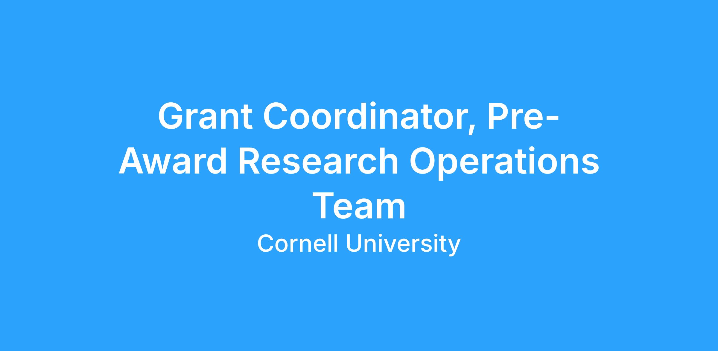 We have an immediate opening for a Grant Coordinator to join our team. This is a great opportunity to begin a career in research administration and make a vital contribution to Cornell's research mission.