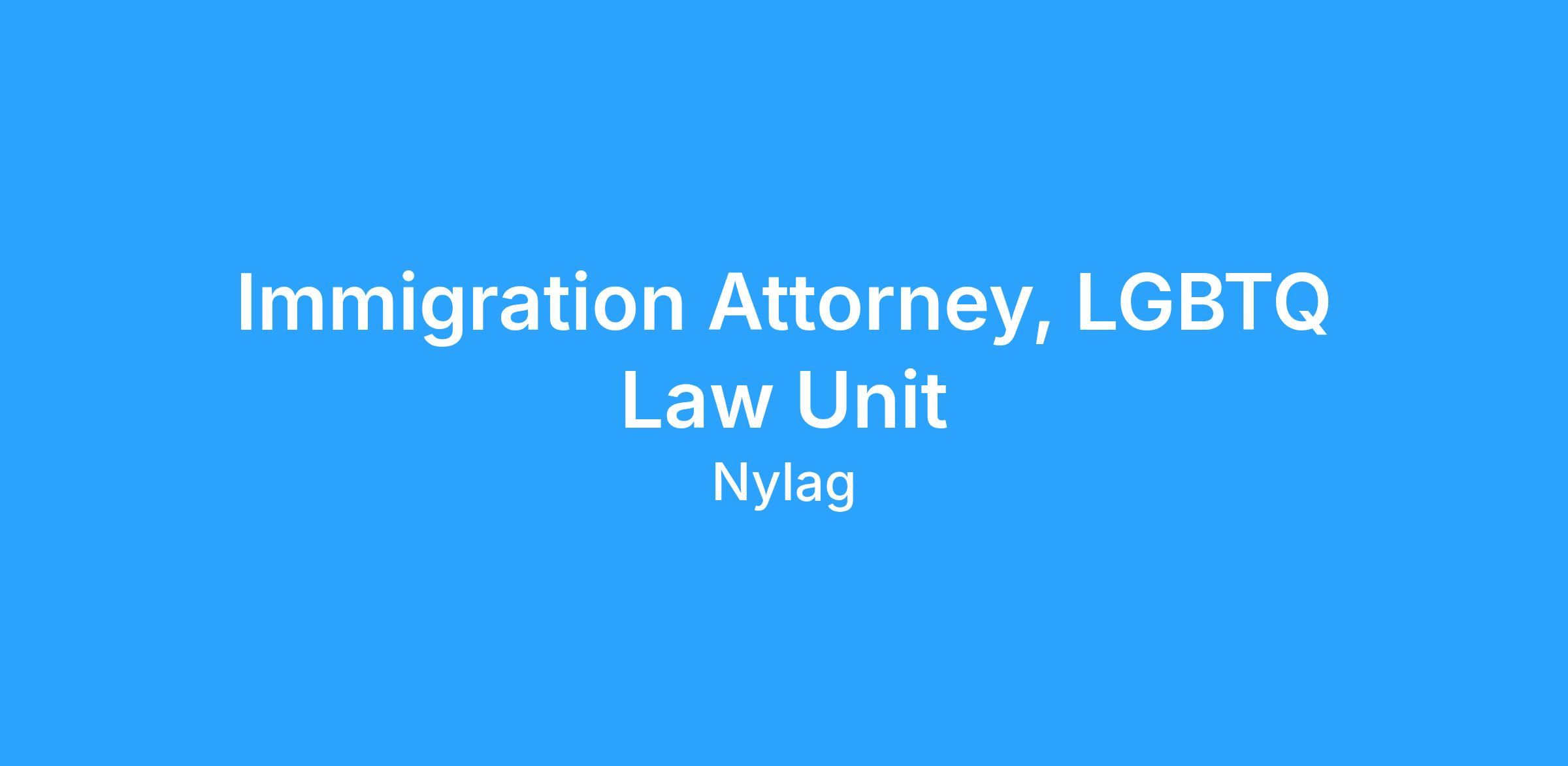 Job description The New York Legal Assistance Group (NYLAG) seeks a highly motivated, experienced Immigration Attorney for a full-time position with the LGBTQ Law Unit. The LGBTQ Law Unit seeks an experienced fulltime attorney to join our team and advocate for our immigrant clients facing removal.Β