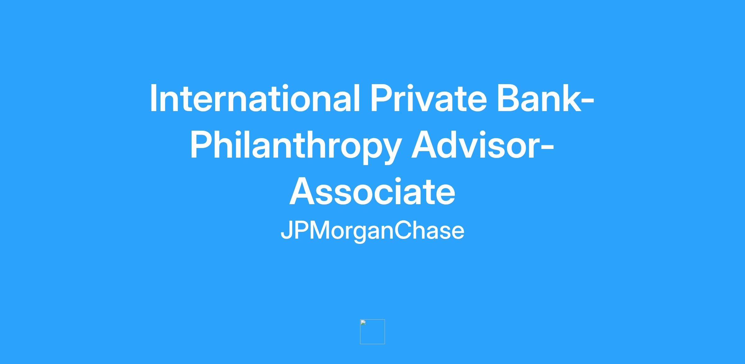 DescriptionThis is an exciting opportunity to join J.P. Morgan Private Advisory at the Private Bank - an integral part of wealth management and one that provides clients and prospects across the wealth spectrum with differentiated advice to help them navigate their financial lives. Morgan Private Advisory practices include: The Philanthropy Centre, Family Governance Advisory, Executive Advisory, Tax Strategy, Private Business Advisory, Family Office, Estate Disposition modelling among other areas of expertise.