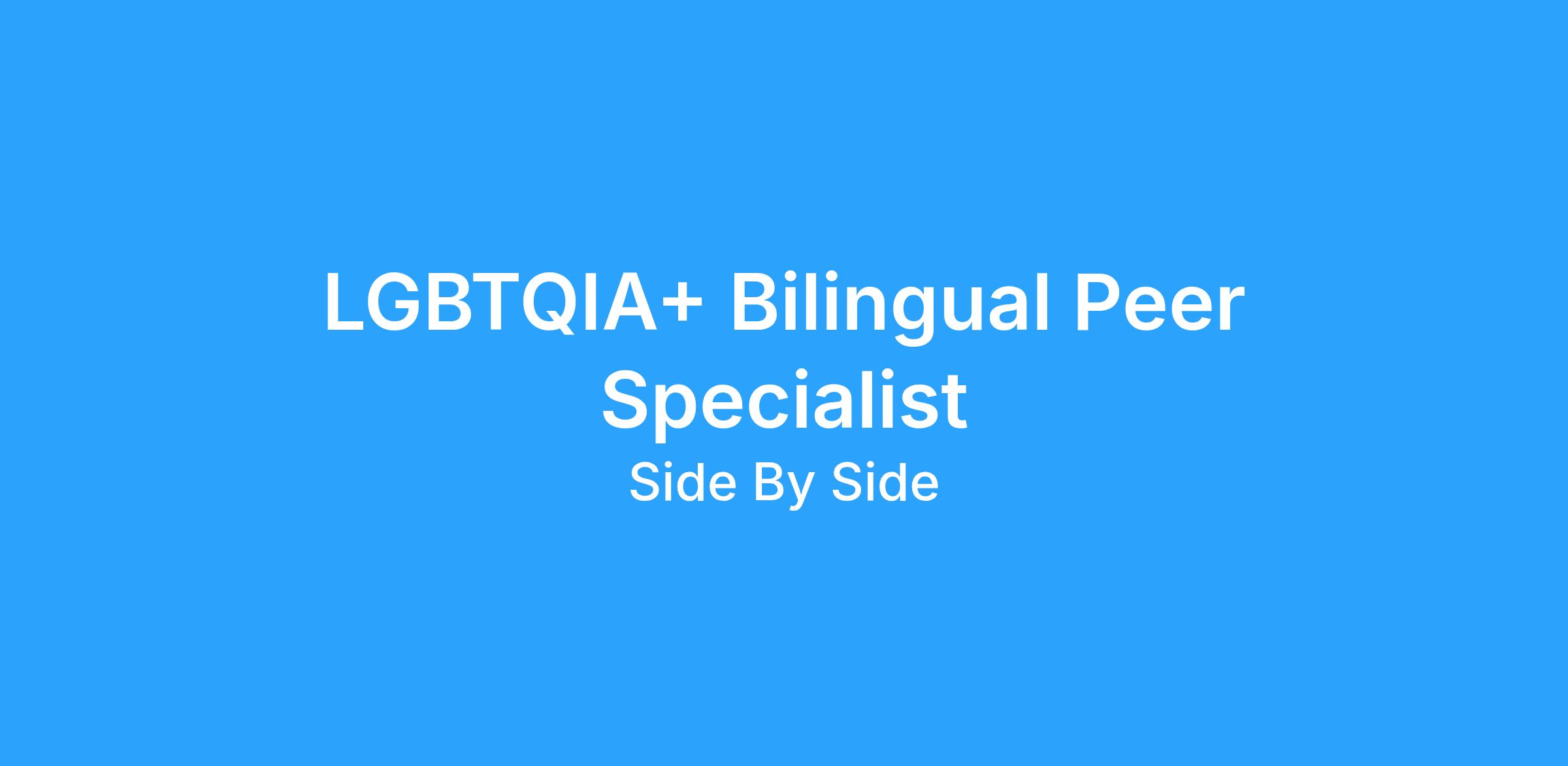 - The Peer Specialist will work closely with staff at the school districts to provide crisis intervention and support groups; build rapport and trust with LGBTQ youth; and decrease barriers to LGBTQ youth receiving services, education and community resources.