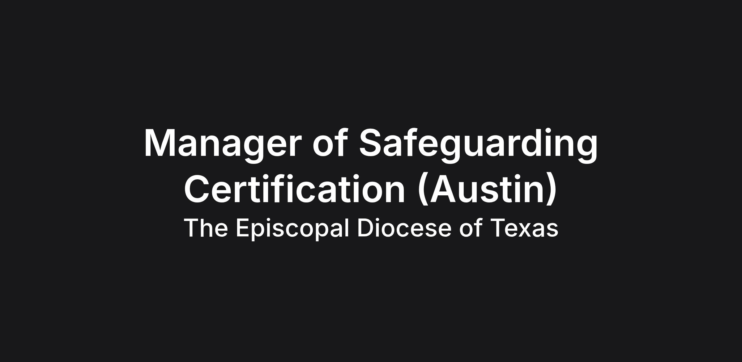 The Manager of Safeguarding Certification supports the mission of the Episcopal Diocese of Texas by managing the implementation of diocesan safeguarding policies, particularly the screening and training processes. This role oversees the Safeguarding Records System (SRS), supervises staff, and provides leadership in compliance, training, and strategic development to ensure a safe and healthy environment across congregations, schools, and organizations.