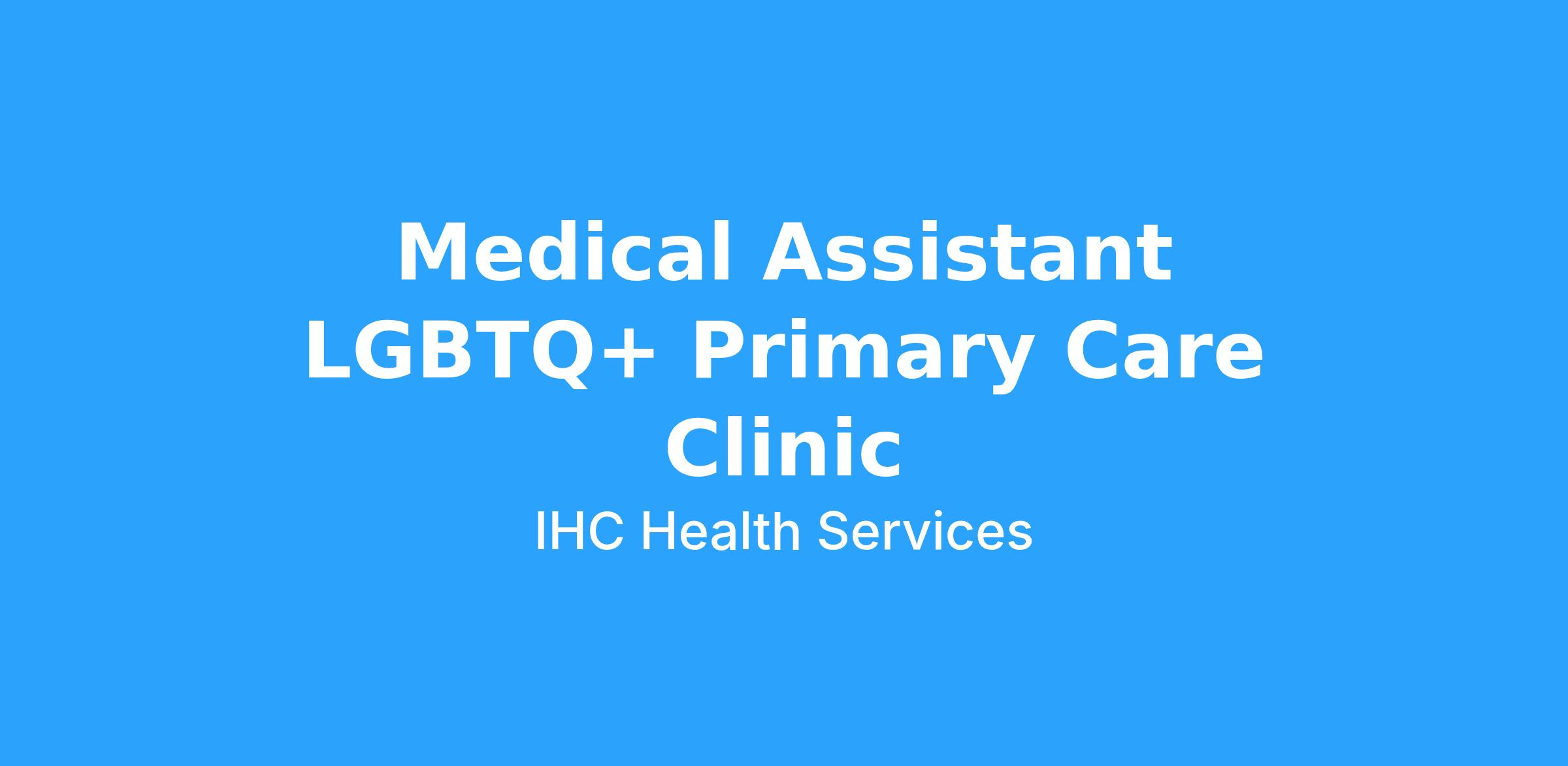 Additional Details:Β Please review Minimum Qualifications listed below before applying.Β This clinic serves our LGBTQ+ population. We are looking for a caring, open-minded and hard working MA to join our team!