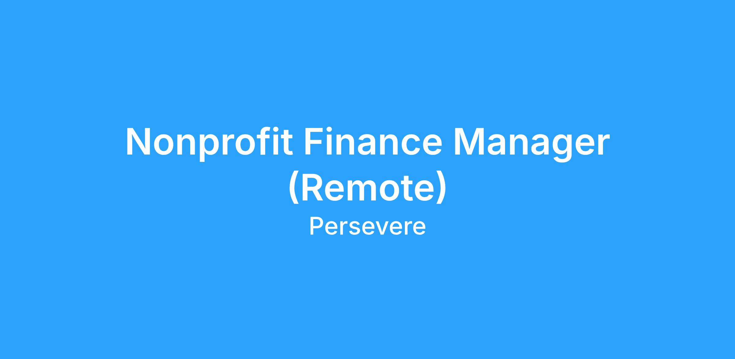 Nonprofit Finance Manager (Remote)