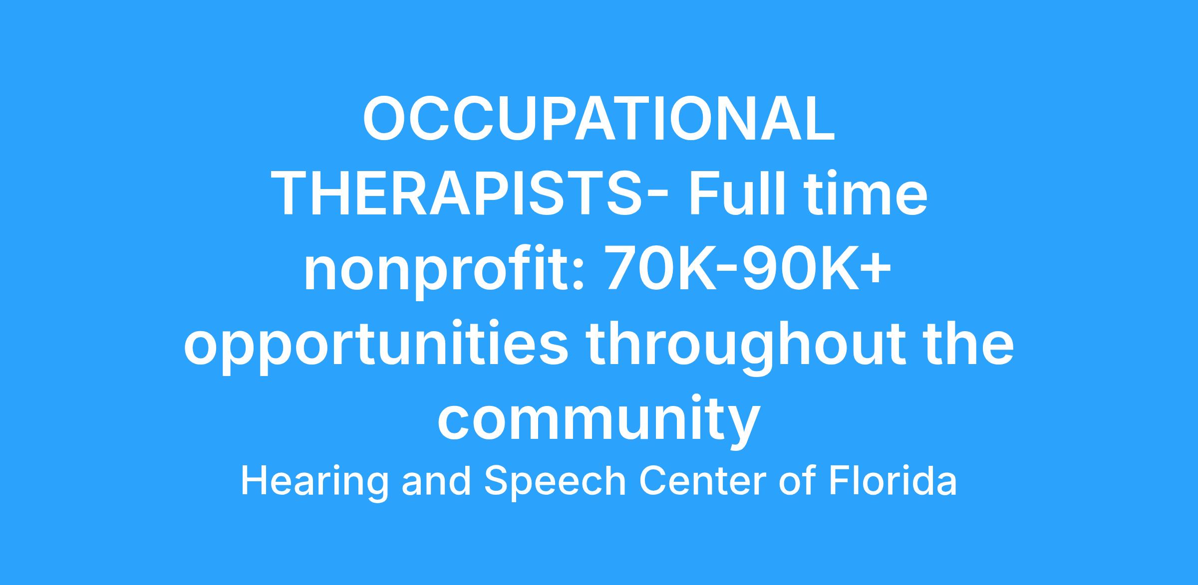 Welcome to the Hearing and Speech Center of Florida, anΒ 89 year old nonprofit organization serving educational and special needs programs. We are one of 45 nonprofit rehab. organizations in nationΒ and offer and offer our clients not only Speech Therapy, Occupational Therapy, Physical Therapy, and Behavior Therapy but also educational programming, research and grant projects related to our fields. Our organization is a leading provider forΒ community programs including research, federally funded programs, hospitals and more.Β We have a full practice for center based services and have community contracts throughout the county at various locations.Β HSCF has great opportunities for specializing, expansion and growth.Β Travel is limited if warranted and we are seeking someone who is committed to the mission of our field.