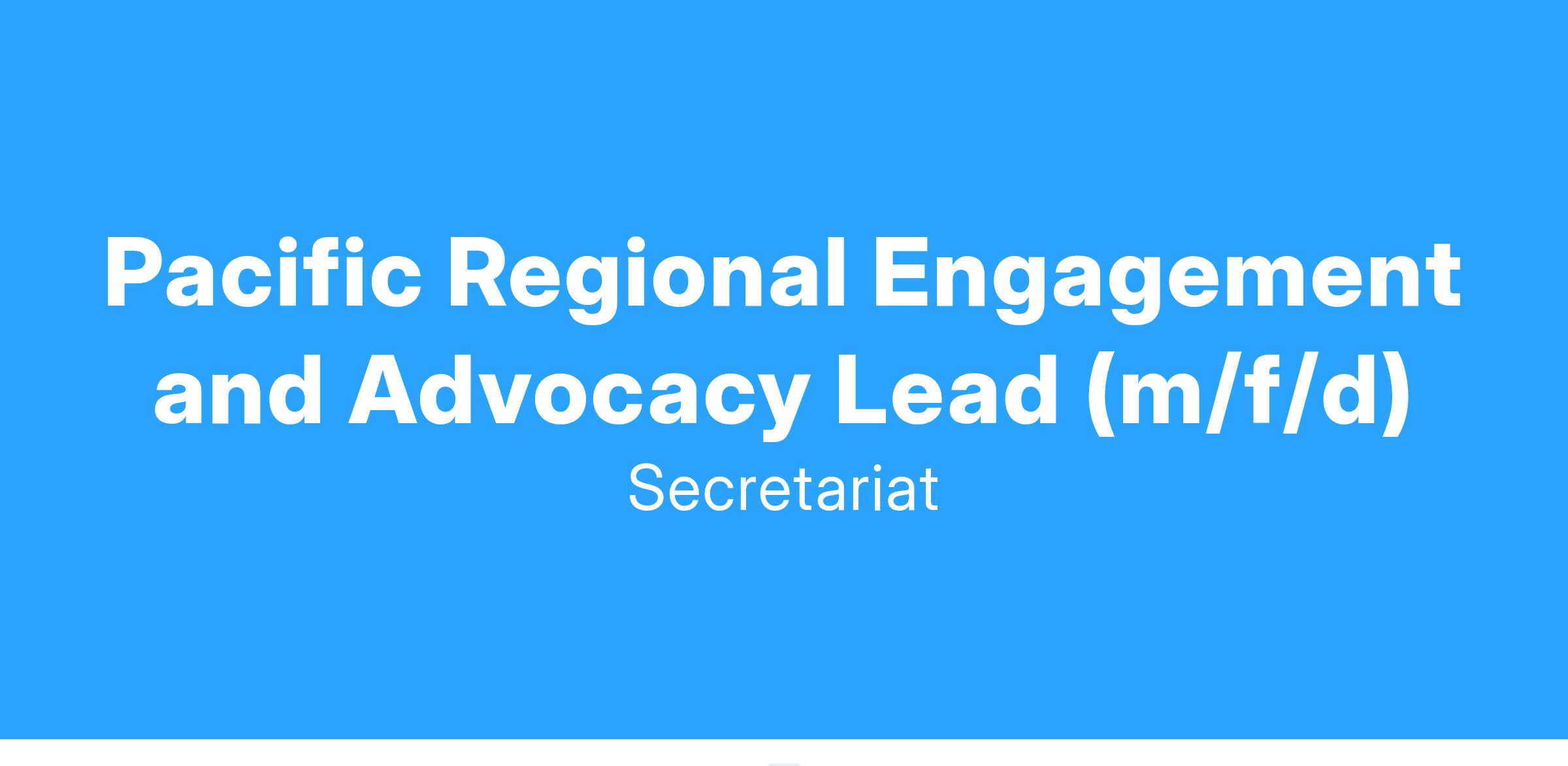 In addition, we are looking for three essential attributes in the Pacific Regional Engagement and Advocacy Lead: