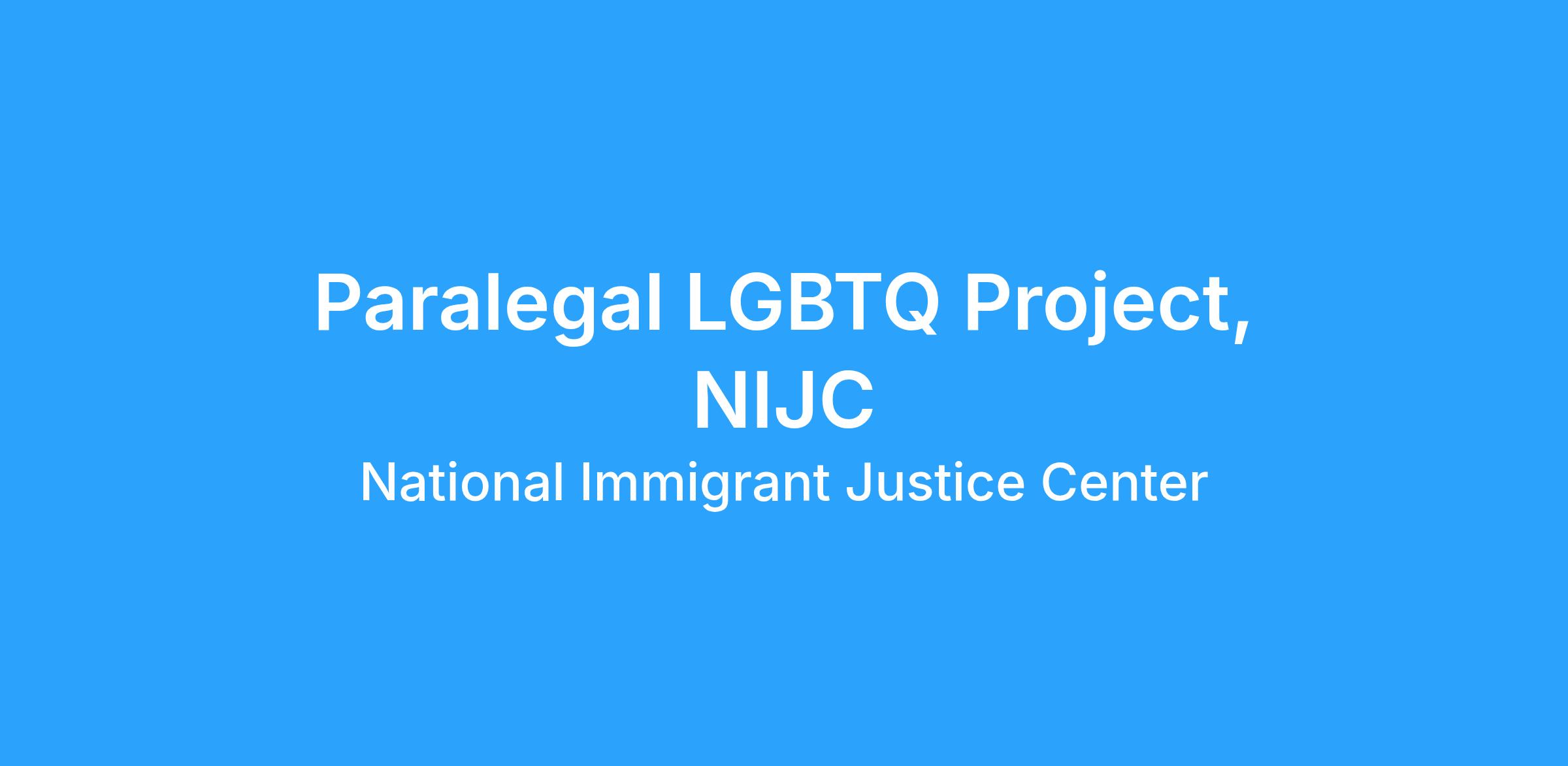 The LGBTQ Immigrant Rights Initiative provides legal services to low-income immigrants who identify as lesbian, gay, bisexual, transgender, or queer (LGBTQ) and those who are living with HIV. NIJC seeks a paralegal to join the LGBTQ team, who will conduct intake, research, case review, document preparation, and other related tasks to support clients, general operations, and the work of project staff. The ideal candidate has experience with or knowledge of systemic barriers impacting LGBTQ immigrants.