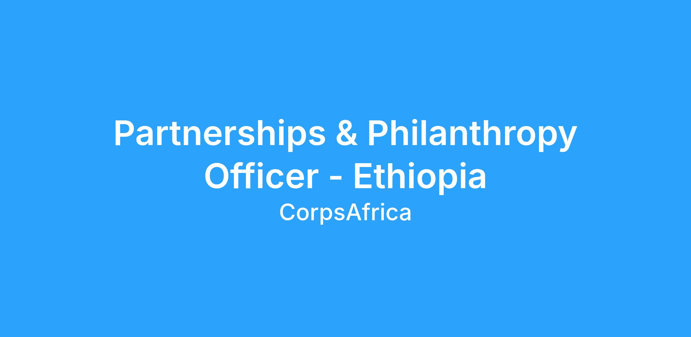 This position reports directly to the Country Director (CD) and Deputy Country Director (DCD), a key country office team member.Β This person is responsible for developing, nurturing, and managing strategic relationships with partners and philanthropic organizations to support the mission and goals of CorpsAfrica/Ethiopia. The role focuses on partnership development and maintaining effective partnerships, donor engagement, grant writing, and fundraising strategy implementation. He/she serves as the key interface between the organization and its development partners and other audiences, ensuring consistency across the organizationβs messages and the partners.Β With guidance from the CD and DCD, is responsible for fundraising activities including the development and implementation of a 3-to-5-year fundraising strategy to support and strategically advance the programβs operations financially.Β