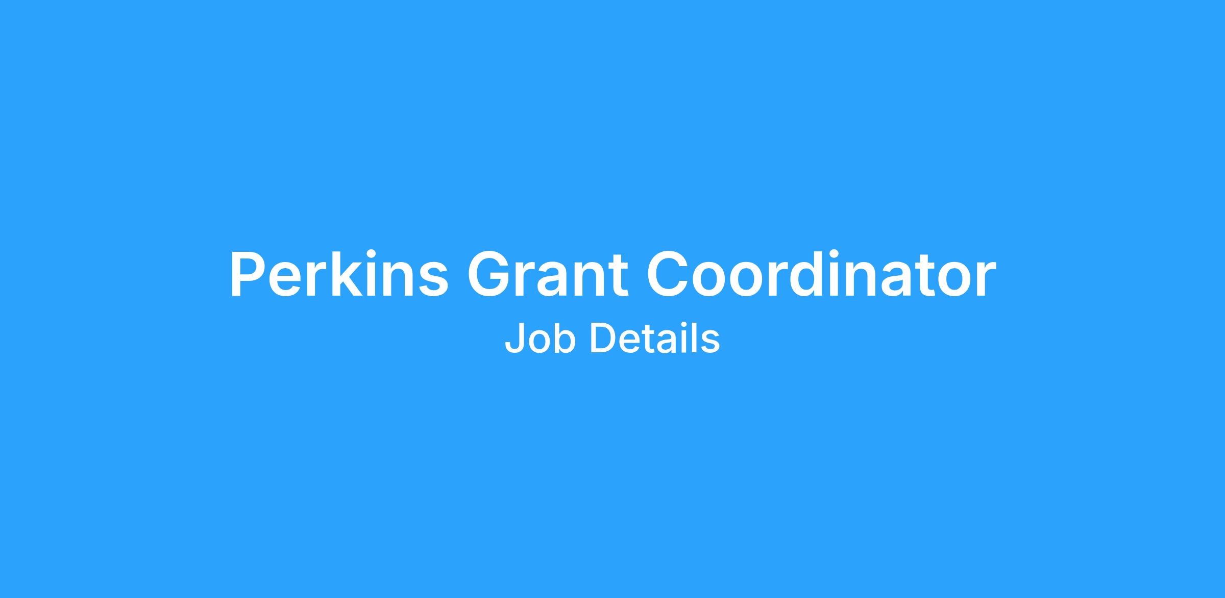 This position is responsible for managing and coordinating both the Basic and Career and College Transition (CCT) Perkins grants, ensuring compliance with all applicable federal, state, and institutional regulations. The role also oversees the development, implementation, and continuous improvement of career-related activities, processes, and pathways for Perkins-eligible students, ensuring that all efforts align with the unit’s objectives, the College’s mission, and broader institutional strategic goals. To accomplish these objectives, the position will: