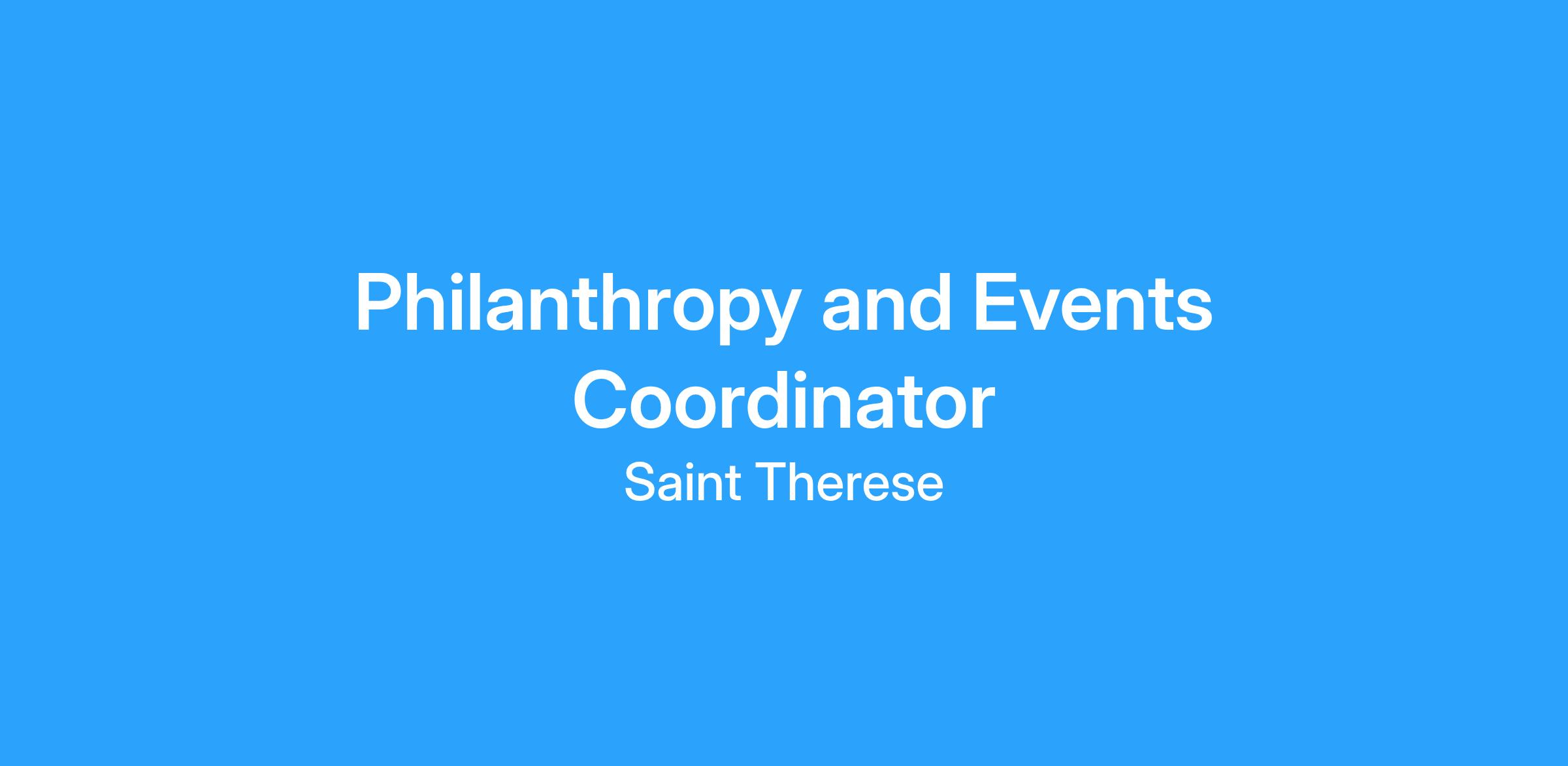 The Philanthropy and Events Coordinator is responsible for developing, organizing, and executing all aspects of Saint Thereseβs annual fundraising events and individual donor stewardship and retention activities. This position plays a key role in cultivating relationships with donors, engaging the community, and ensuring a positive philanthropic experience that supports the mission, vision, and core values of Saint Therese.