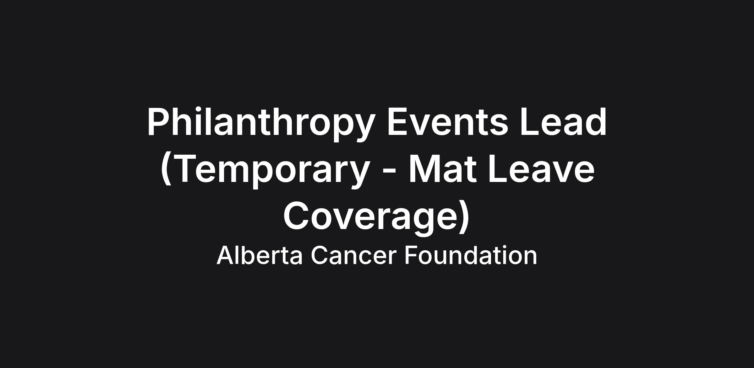 Communications & Engagement team, supporting an integrated fundraising model that advances the Foundationβs mission. This role is responsible for the planning and management of current partnership events, while also supporting new Foundationβwide initiatives and campaigns. The Events Lead builds and maintains strong relationships with a wide range of stakeholders. In addition, this role plays an important stewardship and community engagement function, acting as an ambassador for the Alberta Cancer Foundation at events and within the broader community.