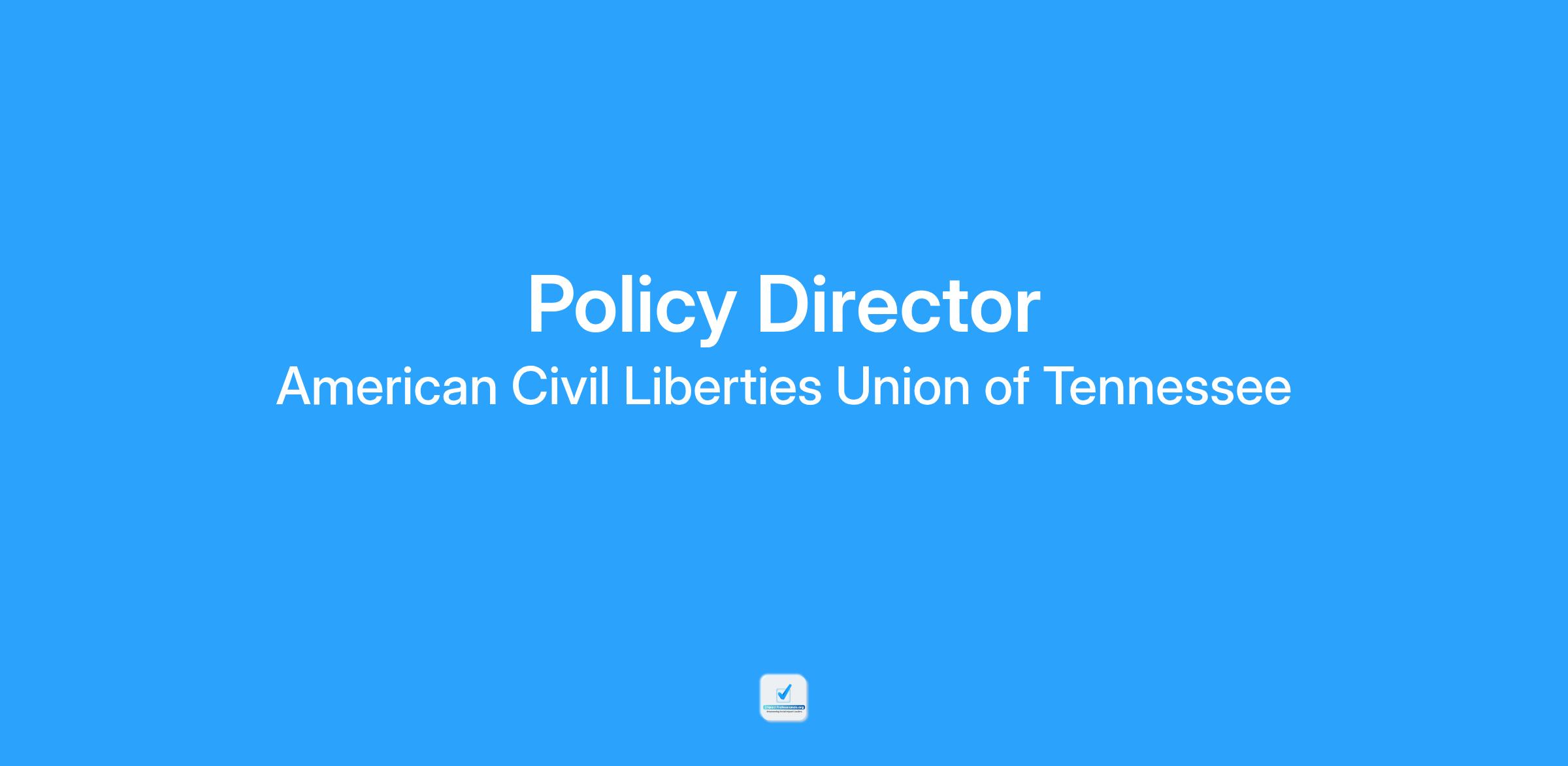 The OpportunityThe American Civil Liberties Union of Tennessee (ACLU-TN) seeks a creative and dynamic team player with policy advocacy experience to become ACLU-TNโs next policy director.