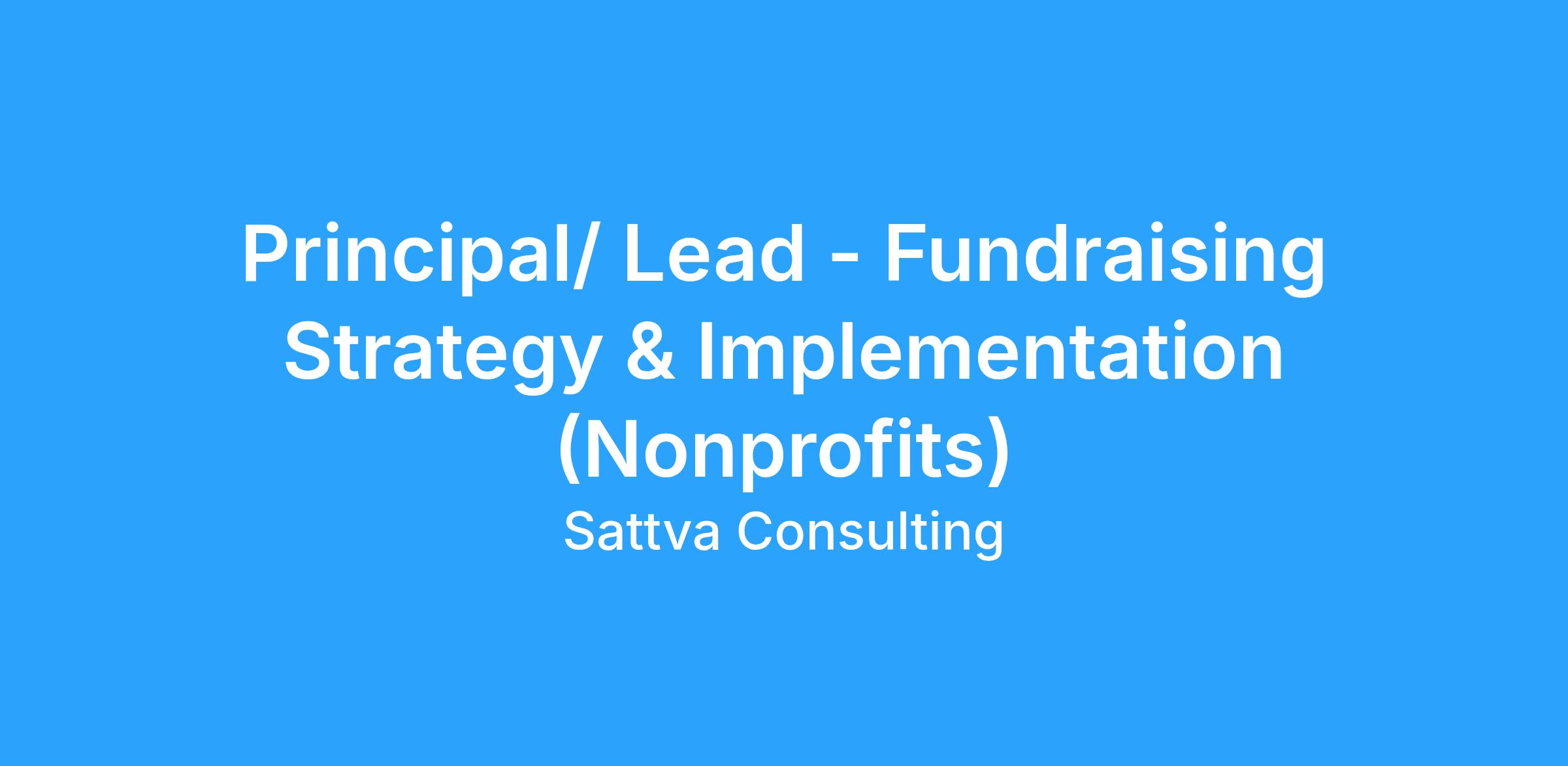 We are hiring a Principal to lead Fundraising Strategy & Implementation Advisory for nonprofit organisations. This is a senior role combining strategic fundraising design, advisory delivery, stakeholder leadership, and commercial accountability.